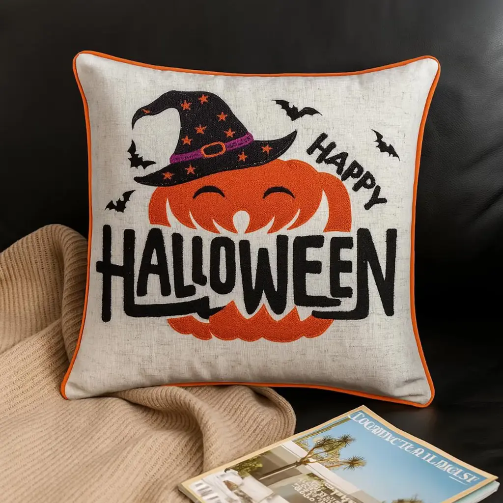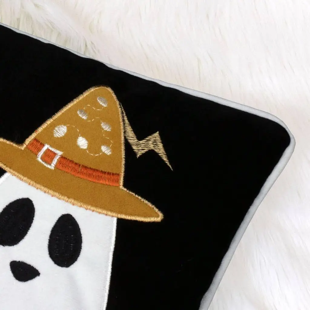 Fall, Halloween, and Thanksgiving-themed ghost design. Durable removable velvet cover with piped edge. Includes 14x20 soft polyester-filled pillow insert. Insert comes pre-stuffed; re-fluff after delivery for best shape. Perfect for spooky, playful, and family-friendly Halloween décor