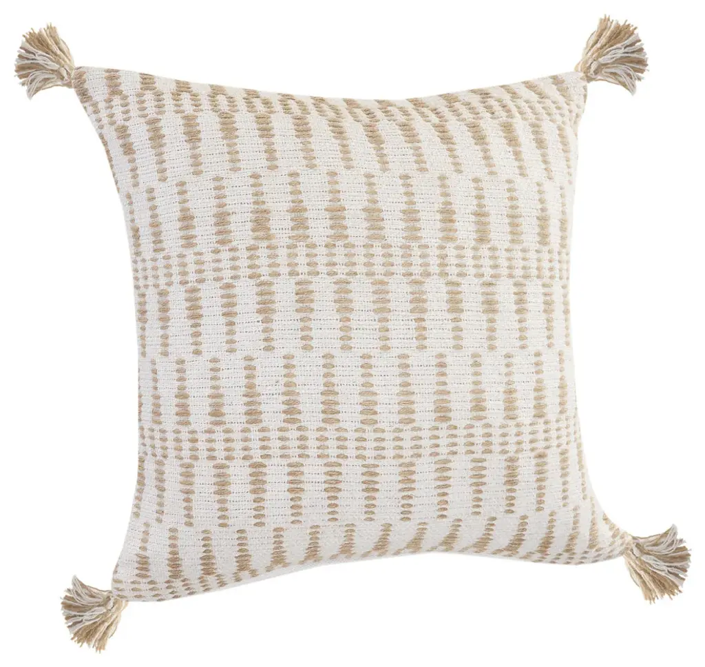 This square pillow features a bold geometric motif and varying textures for a visually intriguing look we love. It's woven from cotton and has cozy hues of brown, cream, and light taupe that are warm and versatile. We love the contrast of the playful tassels and the embroidered details. This pillow comes with a convenient polyfill insert, so you can add it to your space as soon as it arrives. Upkeep is easy: Use the zipper closure to remove the cover and then spot clean.