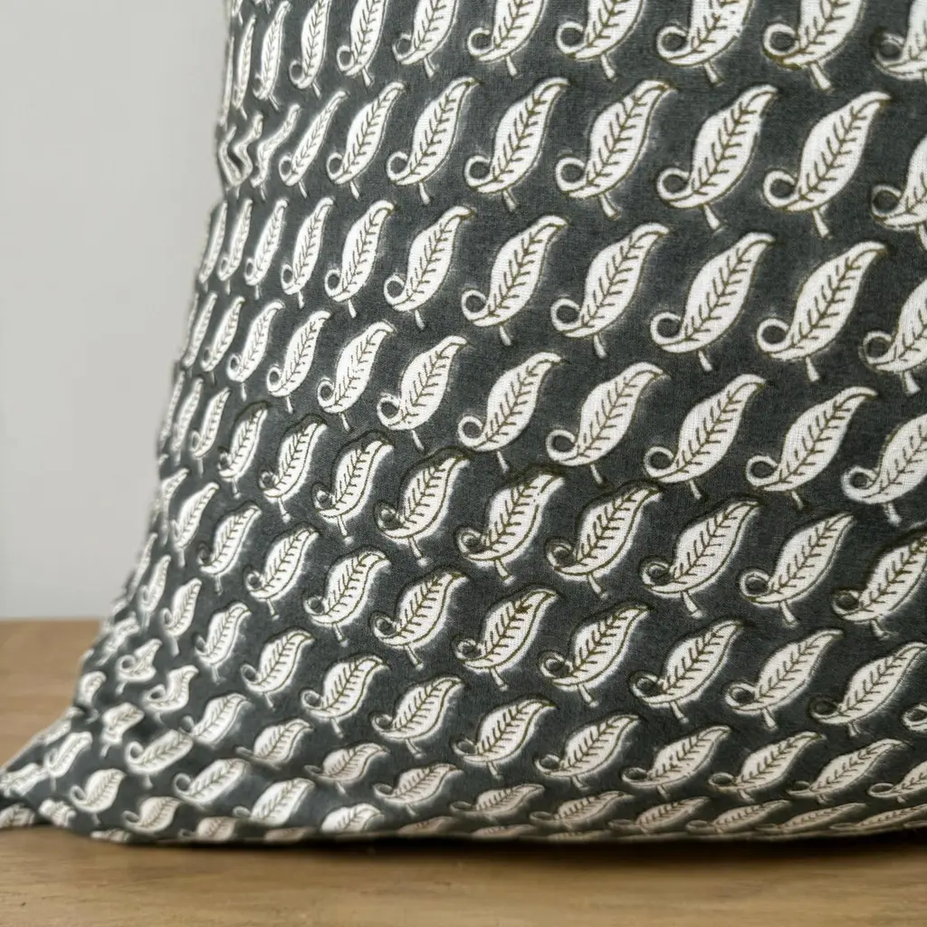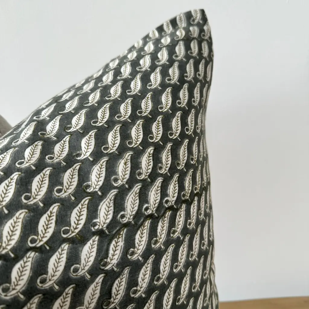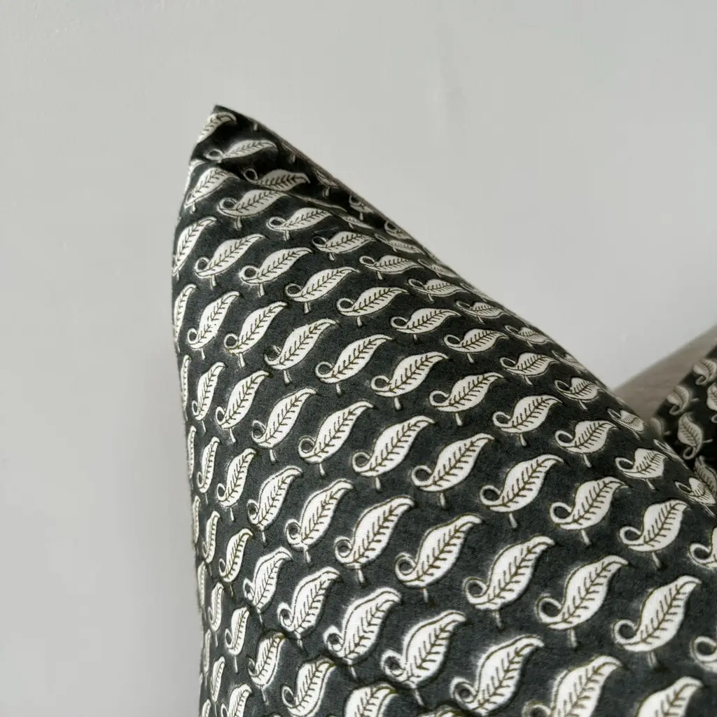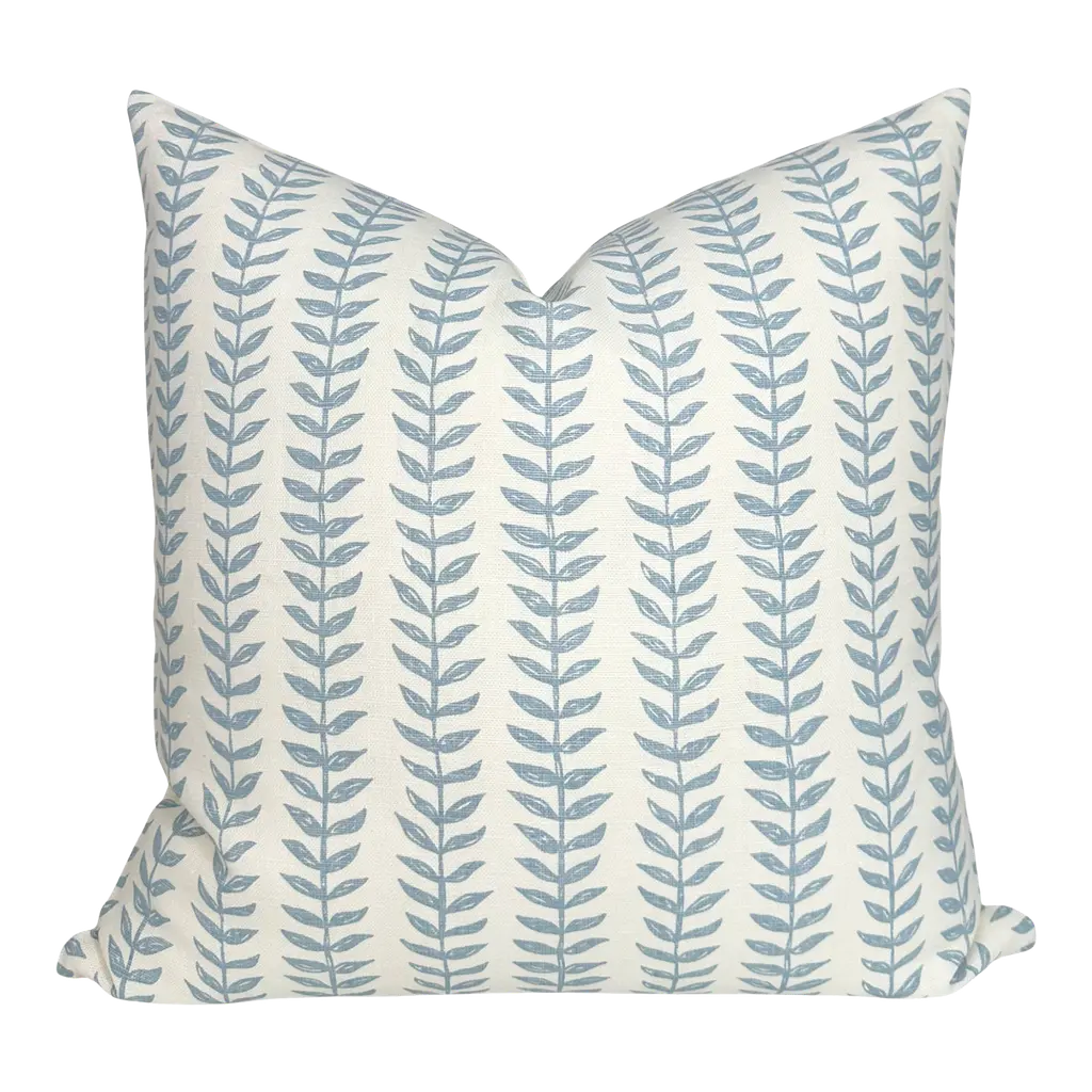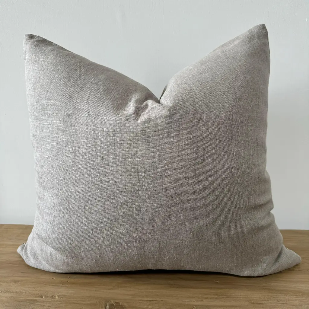 Our latest collection of beautiful hand blocked and linen pillows can be arranged to create beauty and bring a pop of color to your room while adding softness! On the Back: 100% Natural Linen Fabric.-Pattern placement WILL vary.-Includes a feather down insert. -Suggested Care Instructions: Spot or dry clean ONLY.Size: 22" x 22"