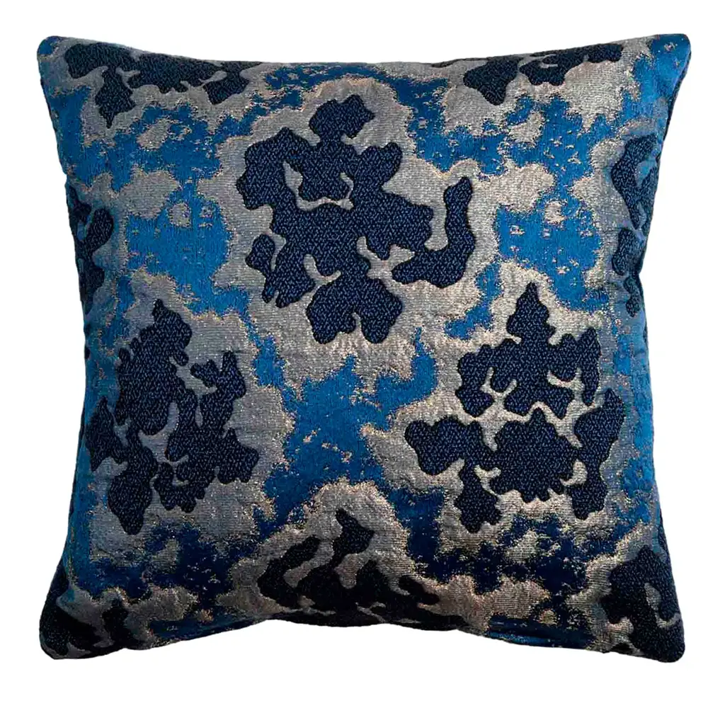 Hand Dyed Silk Velvet Pillow, Rose Pink & Indigo Blue Halo Abstract Pattern