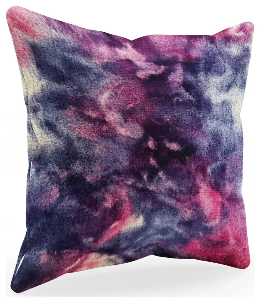 Hand Dyed Silk Velvet Pillow, Rose Pink & Indigo Blue Pleat Abstract Pattern