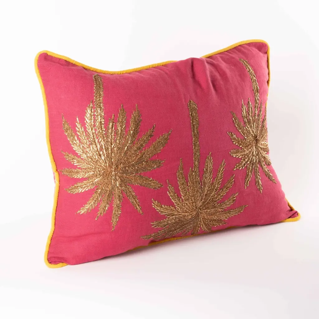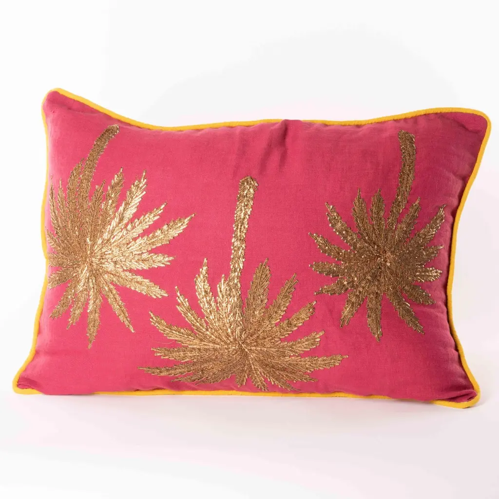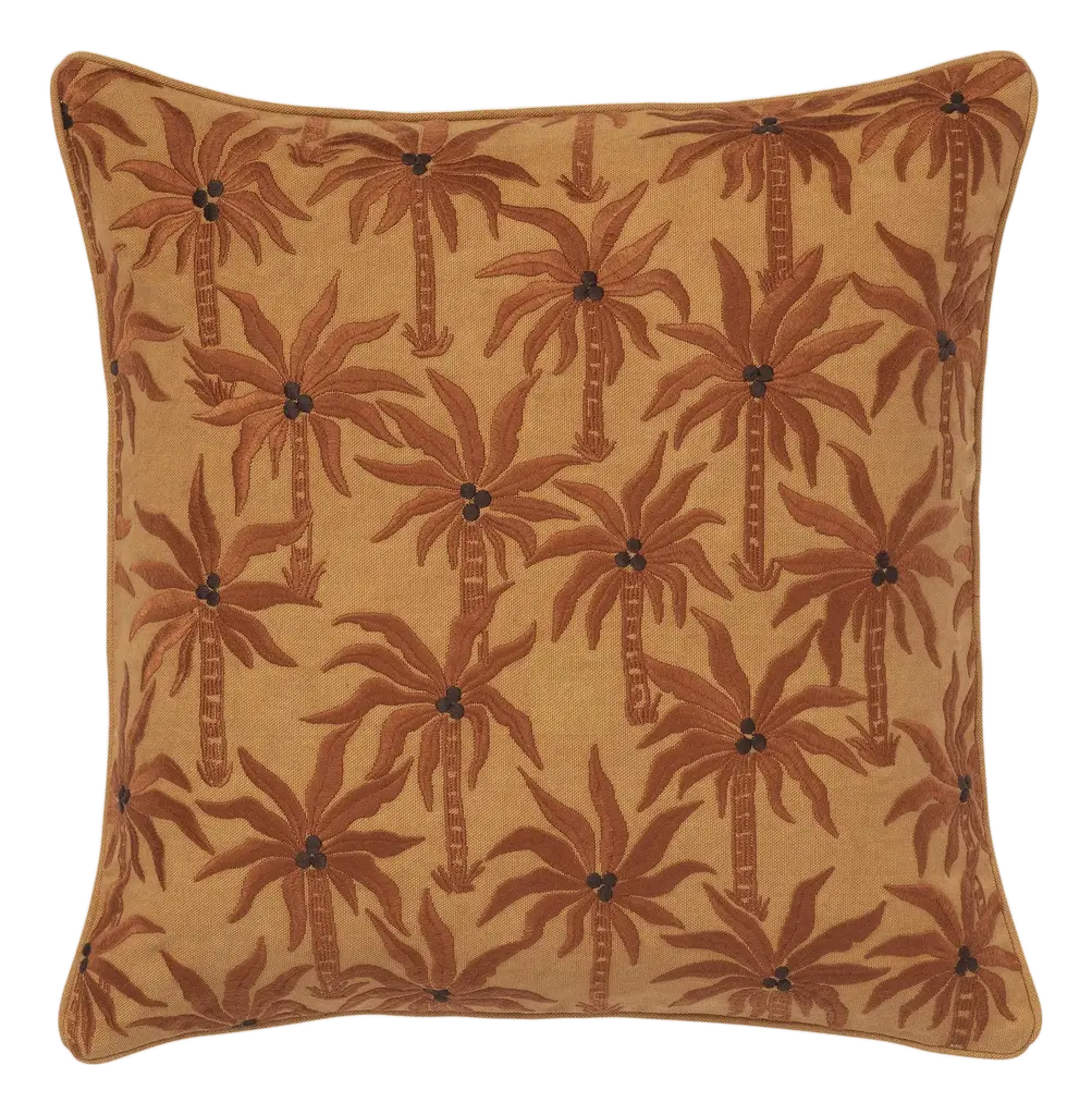 Bring a hint of the tropics to your home with our hand embroidered palm tree cushion. Featuring a beautifully embroidered palm tree, this cushion adds a touch of relaxed elegance to any room. Crafted on a soft linen base, it’s perfect for enhancing both modern and eclectic interiors with its vibrant, nature-inspired charm. Add a tropical flair to your decor with this unique and stylish accent piece.Cushion insert not included