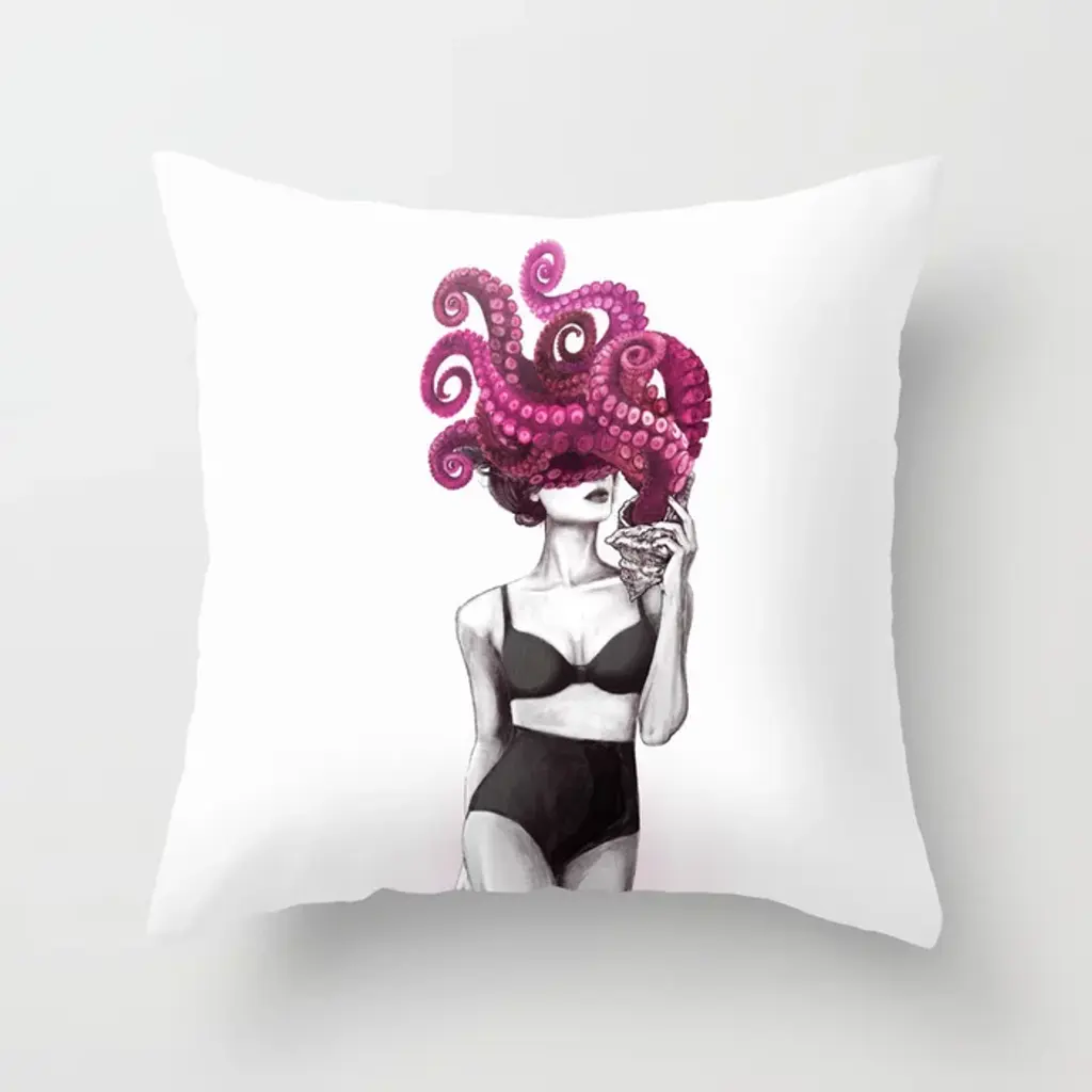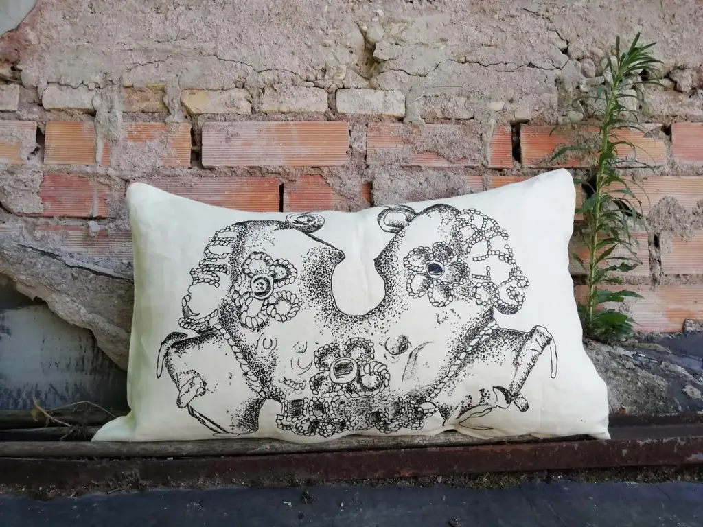 Hand-Painted White Linen Jewels Collection Pillow From House Of Ita