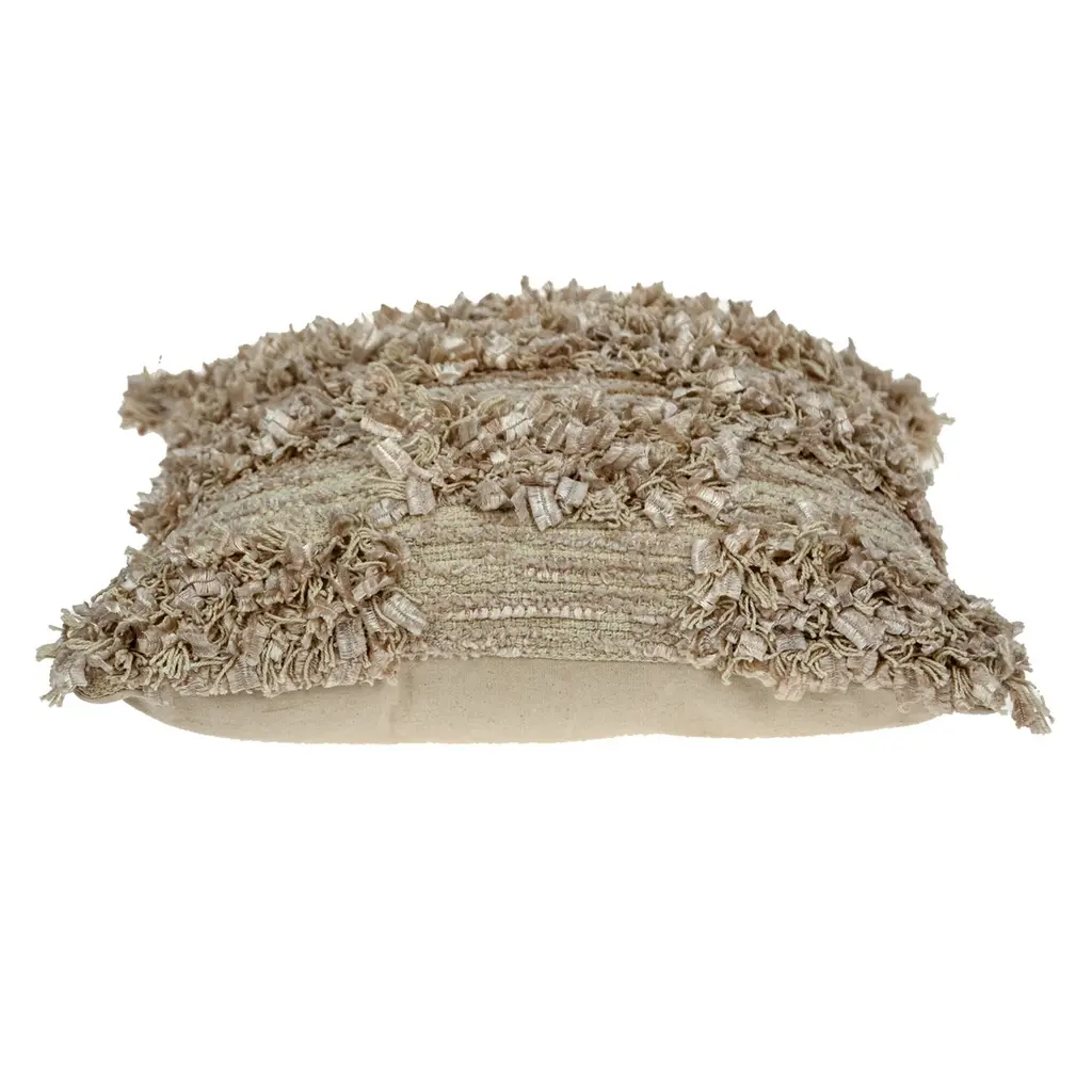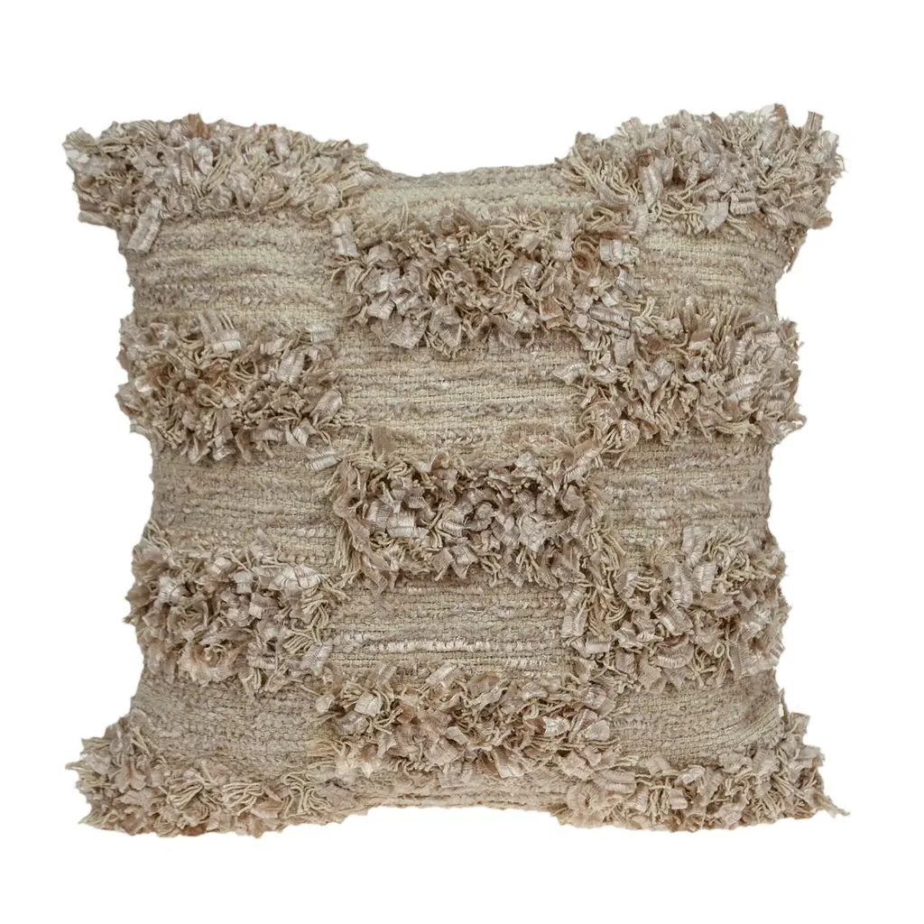Add a touch of modern texture to your space with these beautifully woven pieces. Featuring a chic checkered shag design, they bring a perfect balance of softness and structure to any decor. Handwoven with meticulous craftsmanship, they offer durability while maintaining a cozy, natural appeal. Designed with style and convenience in mind, the pattern graces one side, and the removable cover with a zipper closure ensures effortless cleaning. A must-have accent to refresh and elevate your home’s aesthetic! Product Features: Color(s): beige and pink Showcases checkered shag design Hand woven Design is on one side Removable cover with zipper closure for easy cleaning Care instructions: spot clean only Recommended for indoor use Dimensions: 18"H x 18"W x 6"D Material(s): Shell face: polyester Shell back: cotton Filling: polyester