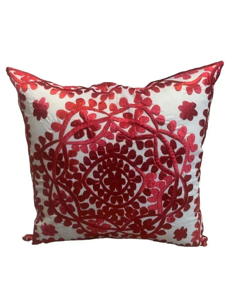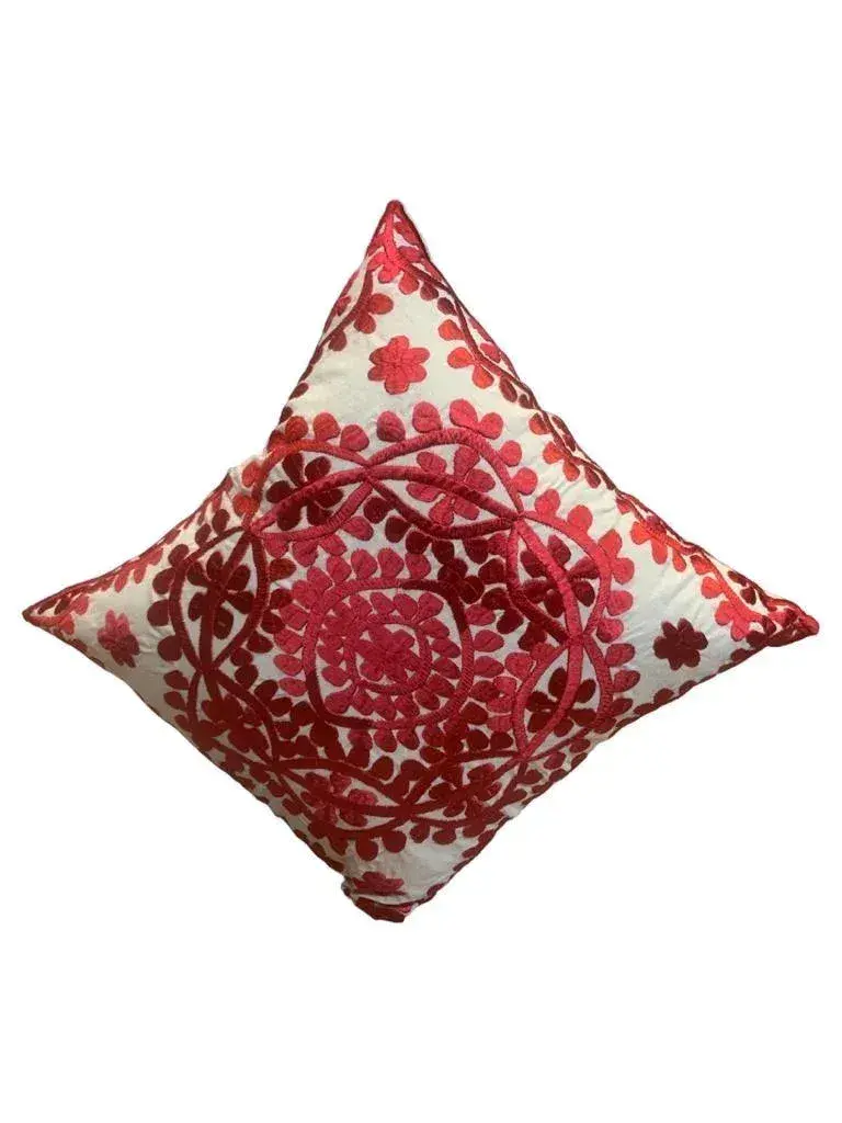 Hand-woven Moroccan woolen pillows from natural white wool as well as natural colored wool in blood red color Gazelle a beautiful pillow that gives aesthetics to the place where there are fillings copied from an ancient Berber Moroccan weave. The photos tell about the aesthetics of these pillows and the ingenuity of the women who wove them. These pillows that we send all over the world are not stuffed, which makes you choose the material you want to stuff them with. I recommend it to lovers of originality and traditional craftsmanship...