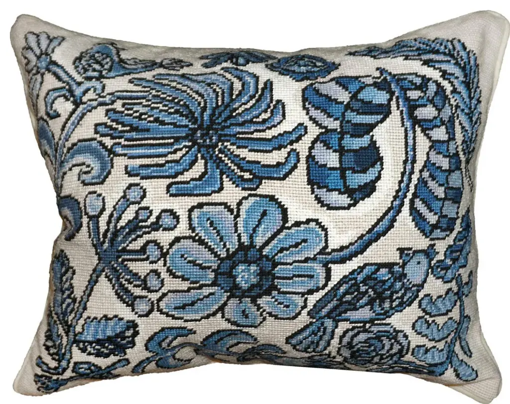 Elevate your living space with the charming sophistication of the Bloomer Morning Pillow by Barbara Gilhooly, beautifully blending artistry with everyday functionality. This vintage-inspired pillow captures the quaint essence of traditional Delft design with its intricate needlepoint detailing rendered in serene blue and cream colors. A piece that draws the eye with its unique pattern and handmade quality, this pillow is not only a comfy addition to your home but a collector''s dream. The lush down insert ensures that it''s as cozy as it is beautiful, while the cotton velvet back provides an understated elegance to your decor. Thoughtfully constructed with a zippered closure, it offers the convenience of removing the insert for cleaning or seasonal switch-ups without any hassle. Ideal for homes that cherish artisanal crafts or those looking to add a traditional touch to modern interior decors, this pillow captures attention with its delft-inspired artistry while maintaining the comfort needed for relaxation. - Dimensions: 18H x 18W x 5D - Handcrafted needlepoint, ensuring unique artistry in each piece - Materials: Wool needlepoint front, cotton velvet back, plush down insert - Stylish and functional with a removable insert and zippered backing - Color Scheme: Cream and blue, perfect for a serene atmosphere