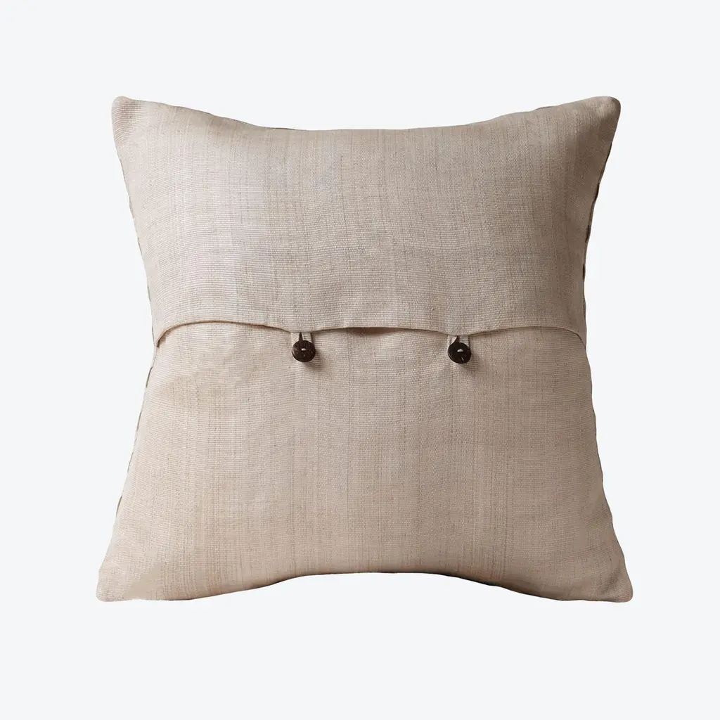 Handcrafted cushion cover made with naturally dyed and delicately woven T’nalak cloth from Abaca fibres and fastened with coconut shell buttonsColour: light sandMeasures 50 x 50 cm19.7 x 19.7inRecommended cushion filler: 61 x 61 cm / 24 x 24inCushion covers are shipped without fillers.Handmade in the PhilippinesProduction lead time: 12 weeksThis handcrafted cushion cover is made from T’nalak cloth. T’nalak is a specialty fabric made from 100% Abaca fibres of the banana family, woven and considered sacred by the women of the T’boli tribe from Lake Sebu of South Cotabato, Mindanao, Philippines.
