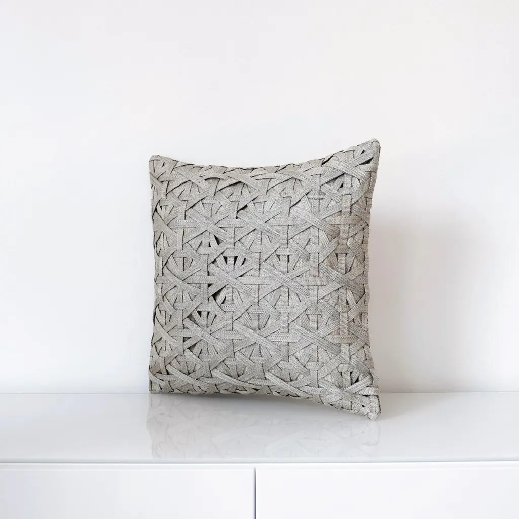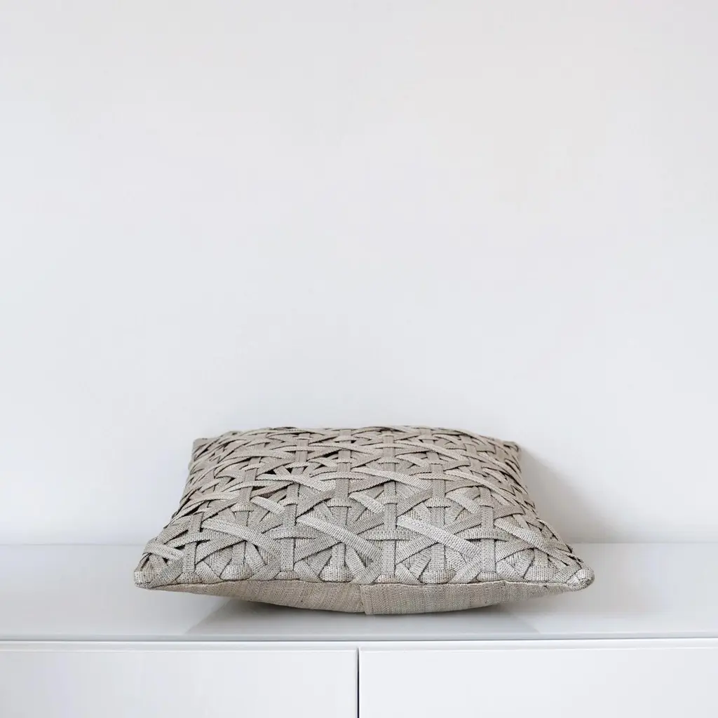 Handcrafted T'nalak Diamond Small Weave Cushion Cover In Light Grey