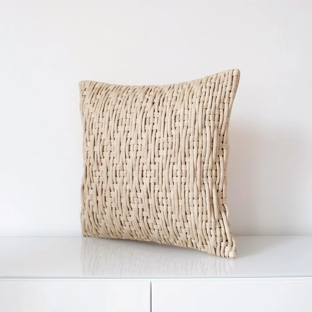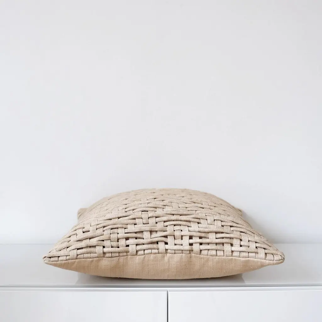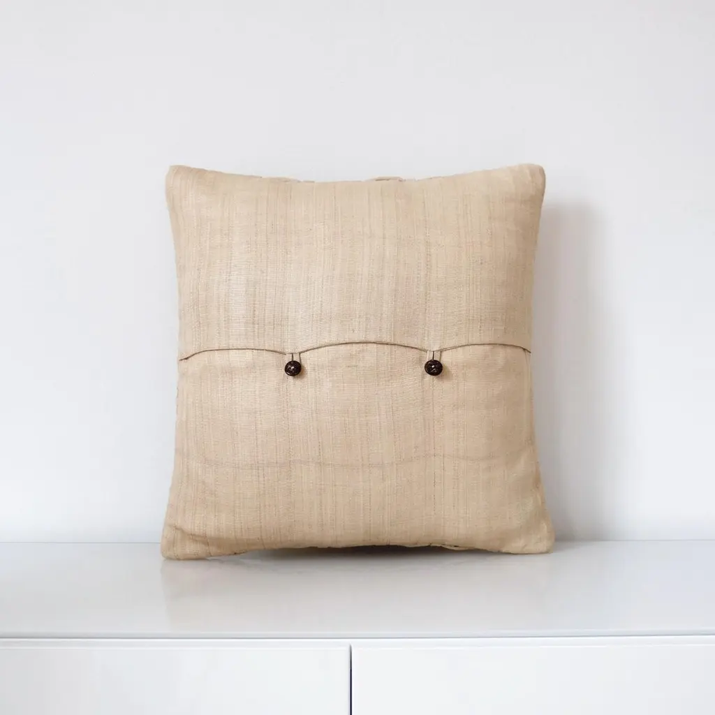 Handcrafted cushion cover made with naturally dyed and delicately woven T’nalak cloth from Abaca fibres and fastened with coconut shell buttonsColour: light sand50 x 50 cm19.7? x 19.7?Recommended cushion filler: 61 x 61 cm / 24? x 24?Cushion covers are shipped without fillers.Handmade in the PhilippinesProduction lead time: 12 weeksPlease contact us for ready stock availability, more information or for a bespoke orderThis handcrafted cushion cover is made from T’nalak cloth. T’nalak is a specialty fabric made from 100% Abaca fibres of the banana family, woven and considered sacred by the women of the T’boli tribe from Lake Sebu of South Cotabato, Mindanao, Philippines.
