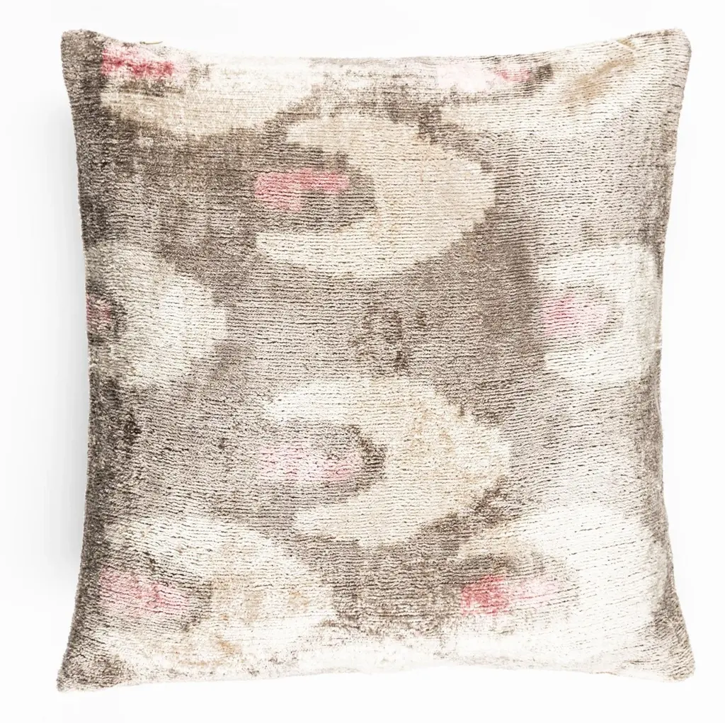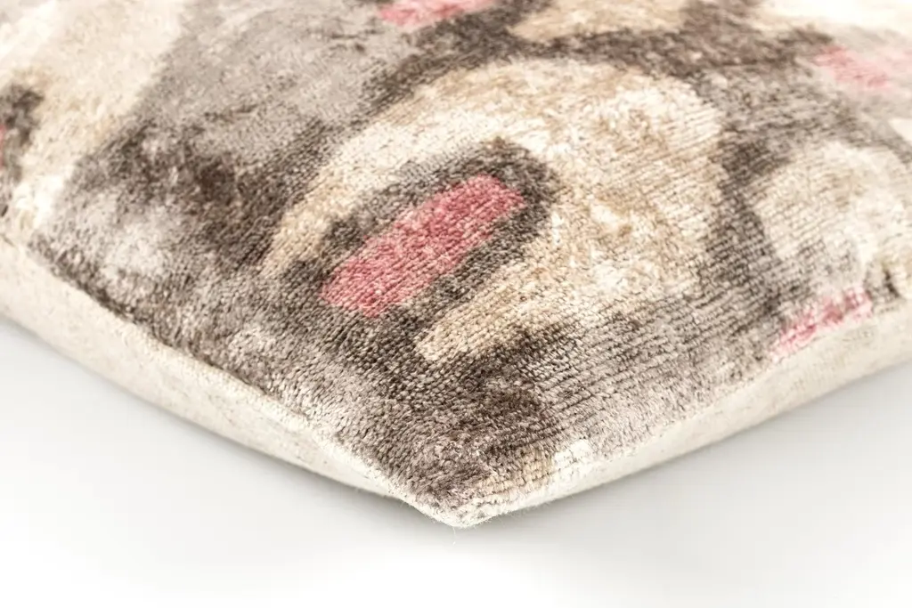 "Elegant Design: Handmade 16x16-inch throw pillow featuring a soothing palette of beige, pink, and gray tones. Luxurious Material: Crafted from organic vegetable-dyed velvet with an ultra-soft, plush texture. Premium Comfort: Includes a premium down feather insert for a cozy, cloud-like feel. Versatile Style: Perfect for modern, boho, farmhouse, or minimalist home decor themes. Artisan Craftsmanship: Meticulously handmade using sustainable, eco-friendly methods. Elevate your interior decor with this exquisite handmade 16x16-inch throw pillow. Crafted from organic vegetable-dyed velvet fabric, this pillow features a soft and luxurious texture that feels gentle to the touch. Each piece is meticulously handmade, showcasing the artistry and heritage of traditional craftsmanship. The elegant design, adorned with natural tones and delicate patterns, complements a wide range of home decor styles. Filled with a premium down feather insert, this pillow offers superior comfort and support, making it a perfect addition to your living room, bedroom, or office space. Designed for those who value luxury and sustainability, this pillow reflects timeless beauty and eco-conscious craftsmanship. Transform your home with this stunning piece, ideal for creating cozy and stylish spaces."