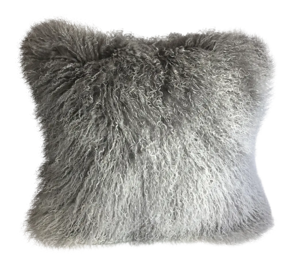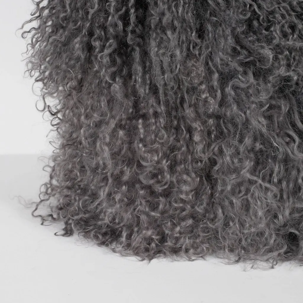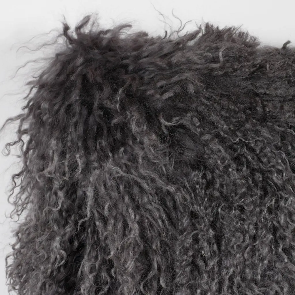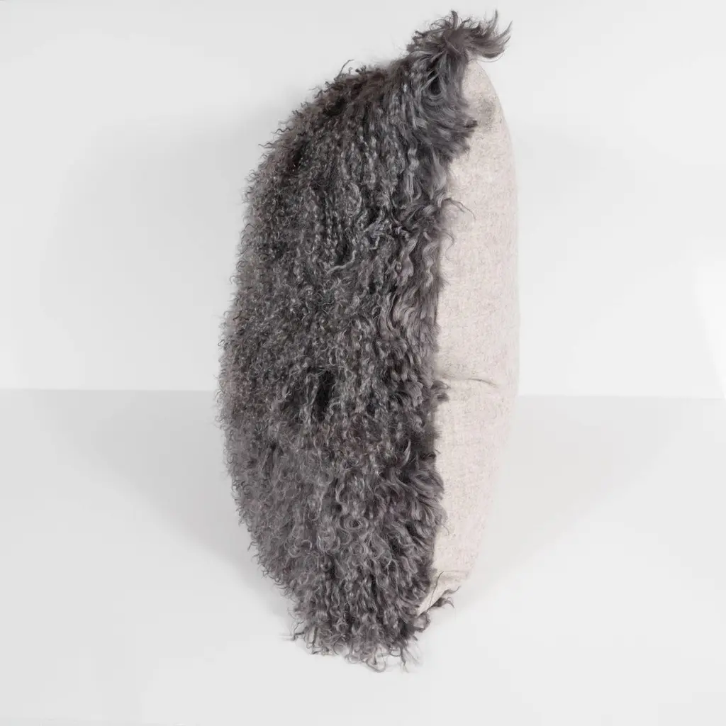 Handmade Custom Mongolian Lamb Pillow In Slate Gray With Cashmere Wool Backing