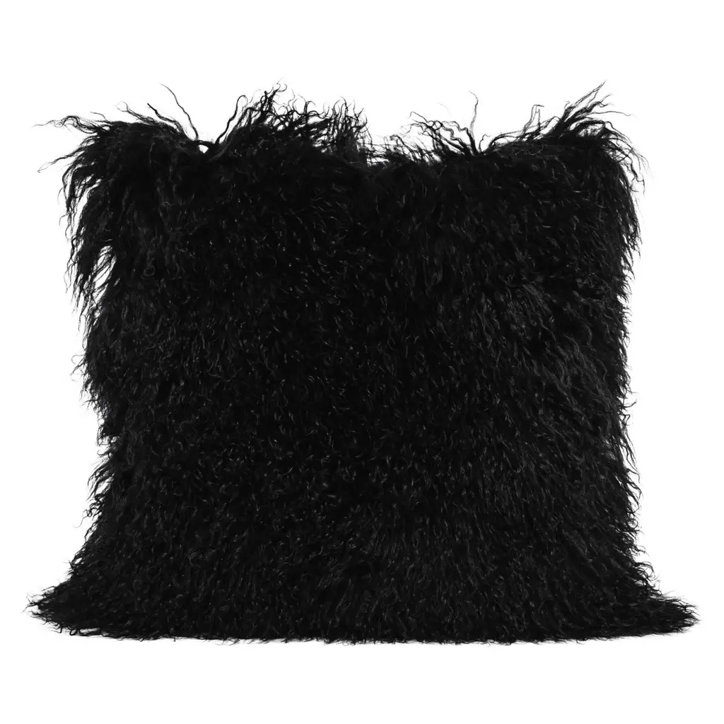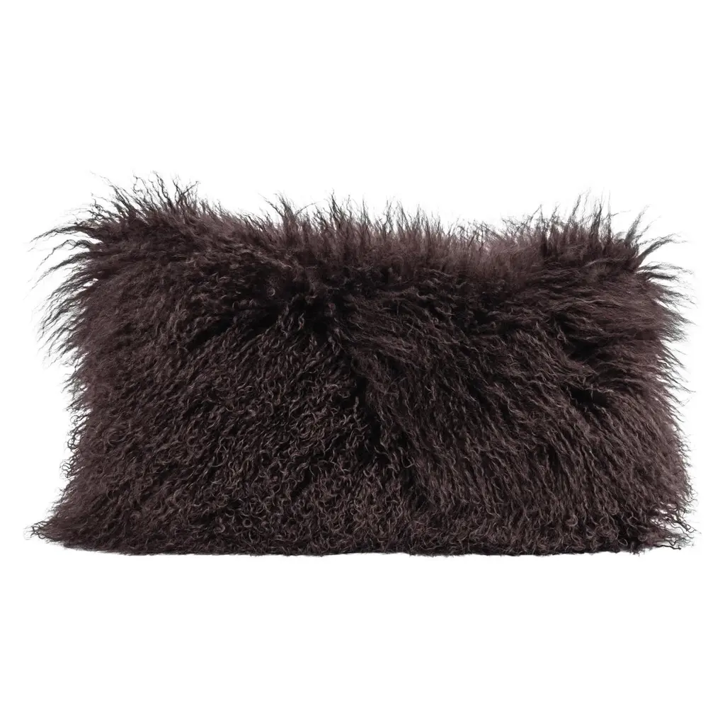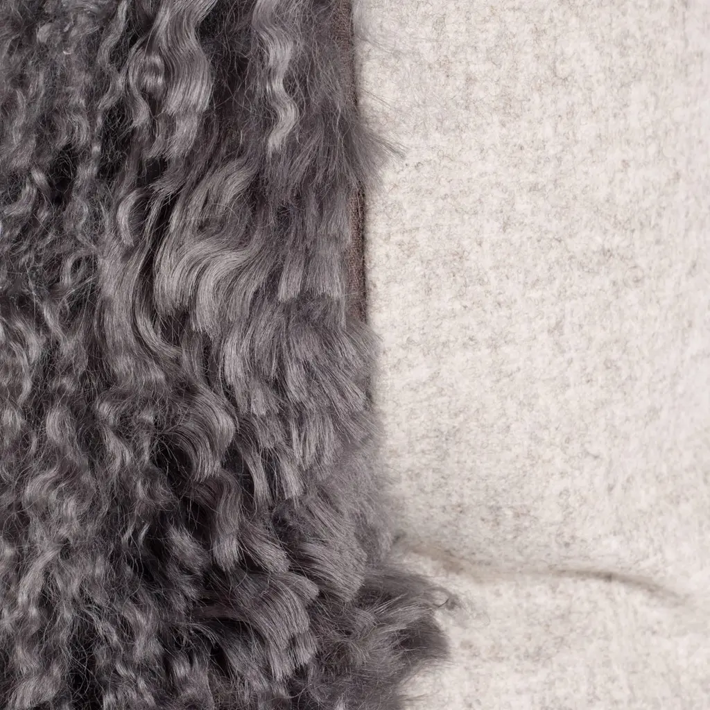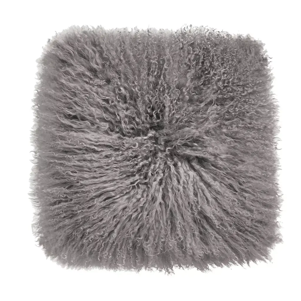 Handmade Custom Mongolian Lamb Pillow In Slate Gray With Cashmere Wool Backing
