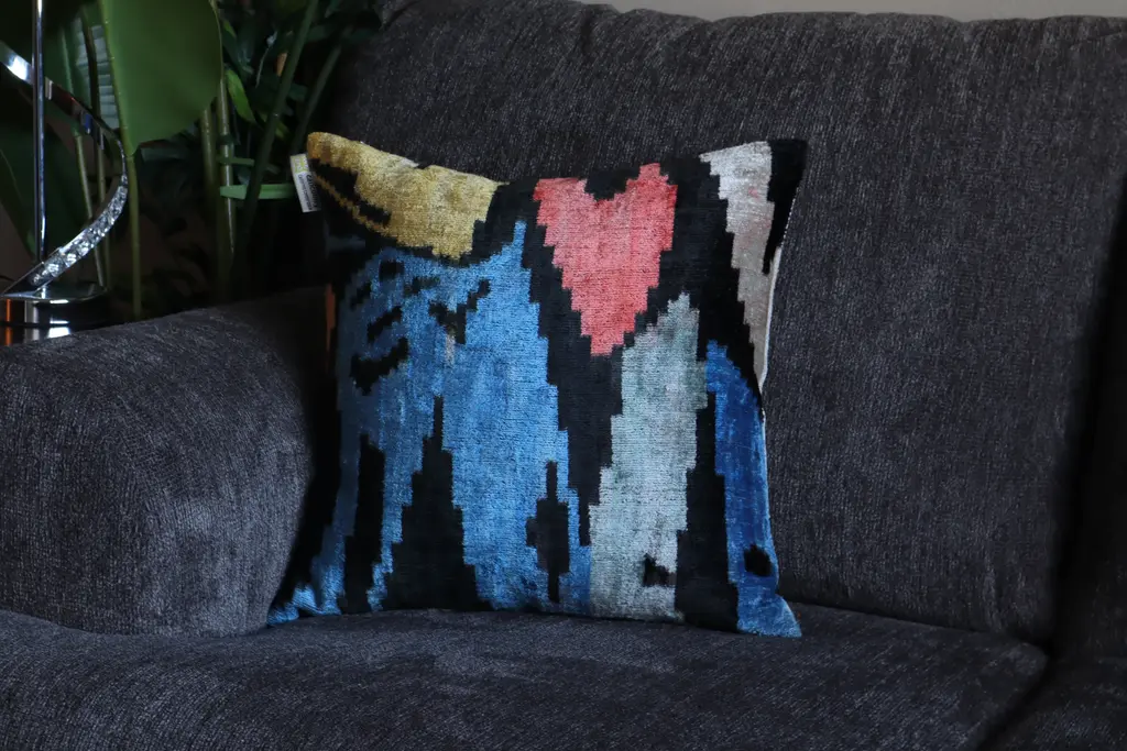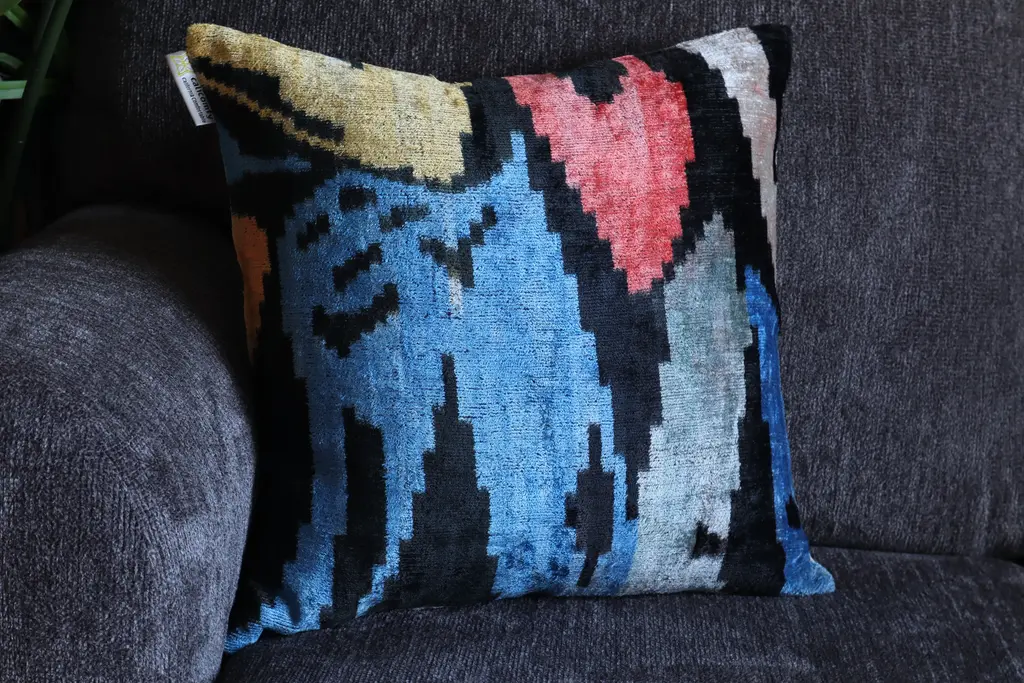 100% silk velvet material making the throw pillows super soft and cozy with a delicate touch and giving your room a more elegant look. Ikat design gives these throw pillows a more artistic, a sort of a traditional look. Matching with throw pillows of different colors suitable with the color tone these velvet throw pillows will make your living room more lively and bright.