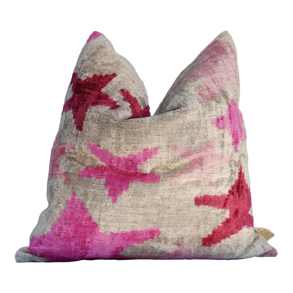 Handmade Ikat Silk Velvet Pillow With Premium Down Feather Insert By Canvello