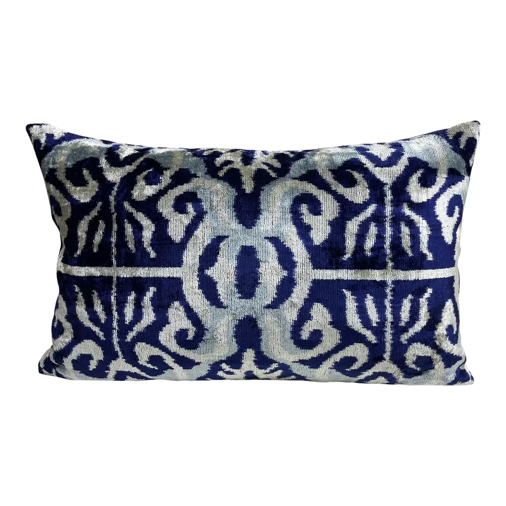 Handmade Ikat Silk Velvet Pillow With Premium Down Feather Insert By Canvello