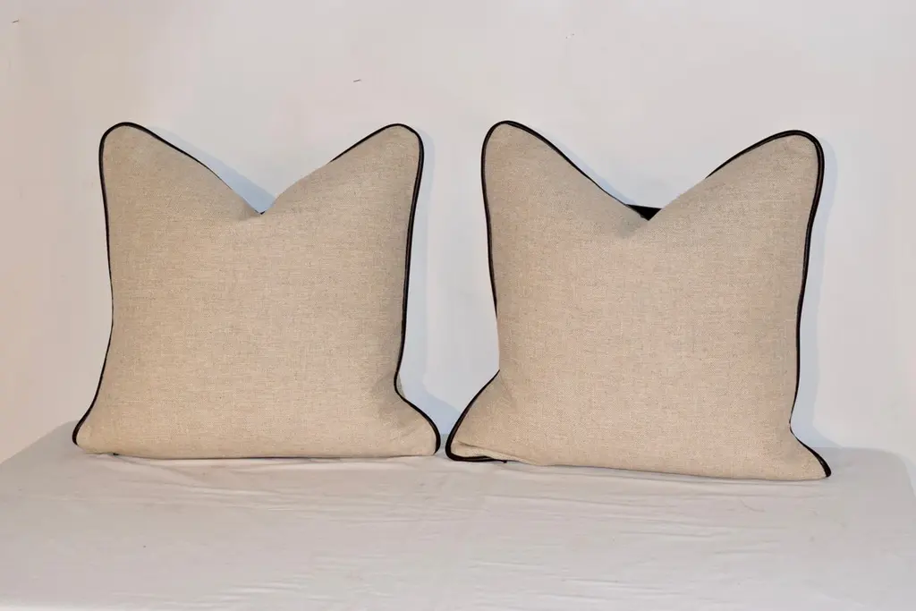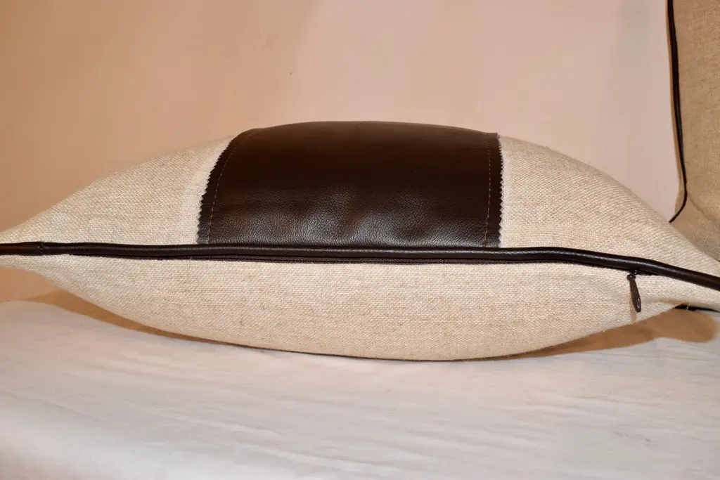 Handmade Linen Pillows With Leather Stripe And Welting