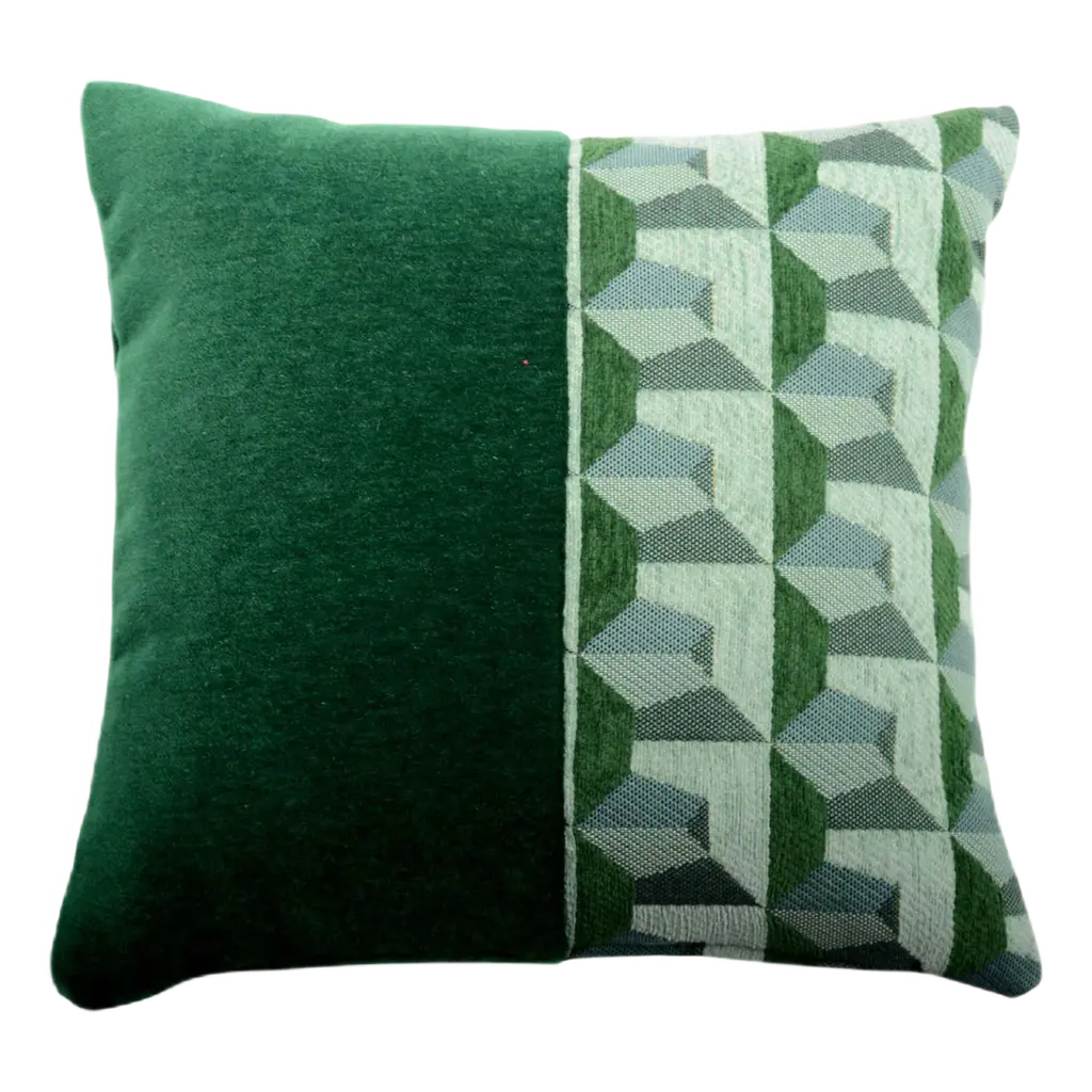 Handmade Silk Velvet Striped Throw Pillow, Bold Green, Blue, And Black Design With Down Feather Insert