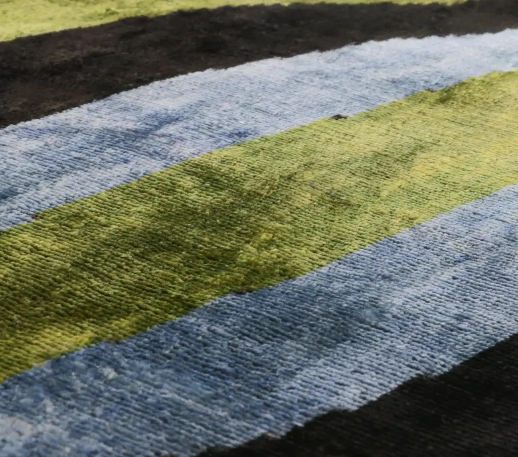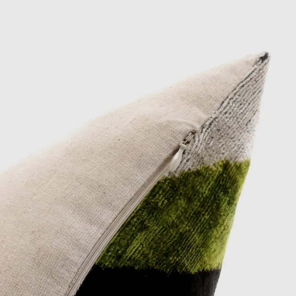 "Enhance your home decor with this handmade silk velvet throw pillow, featuring striking vertical stripes in green, blue, and black. Perfect for modern and contemporary interiors, this 16x16-inch throw pillow brings a luxurious touch to any living room, bedroom, or office. The rich color palette creates a bold and dynamic look, while the high-quality silk velvet fabric adds a soft texture and subtle sheen. Filled with a premium down feather insert, this pillow provides plush comfort and is perfect for layering or as a standalone accent. A hidden zipper allows for easy removal and cleaning, ensuring both style and functionality in one elegant piece. This 16x16-inch throw pillow is the perfect accent for adding bold, modern design to any space. The vertical stripes in vibrant green, cool blue, and classic black create a striking visual effect, ideal for refreshing your living room or bedroom decor. Made from luxurious silk velvet, this pillow offers a high-end look and feel, while the premium down feather insert provides exceptional comfort. Whether used as a statement piece or layered with other cushions, this handmade pillow will elevate the style of your home with its dynamic design and luxurious materials."