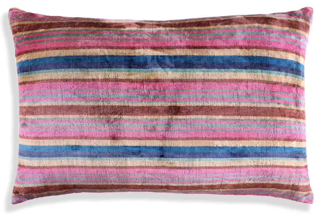 Handmade Striped Velvet Pillow – 16x24" Colorful Silk Cushion