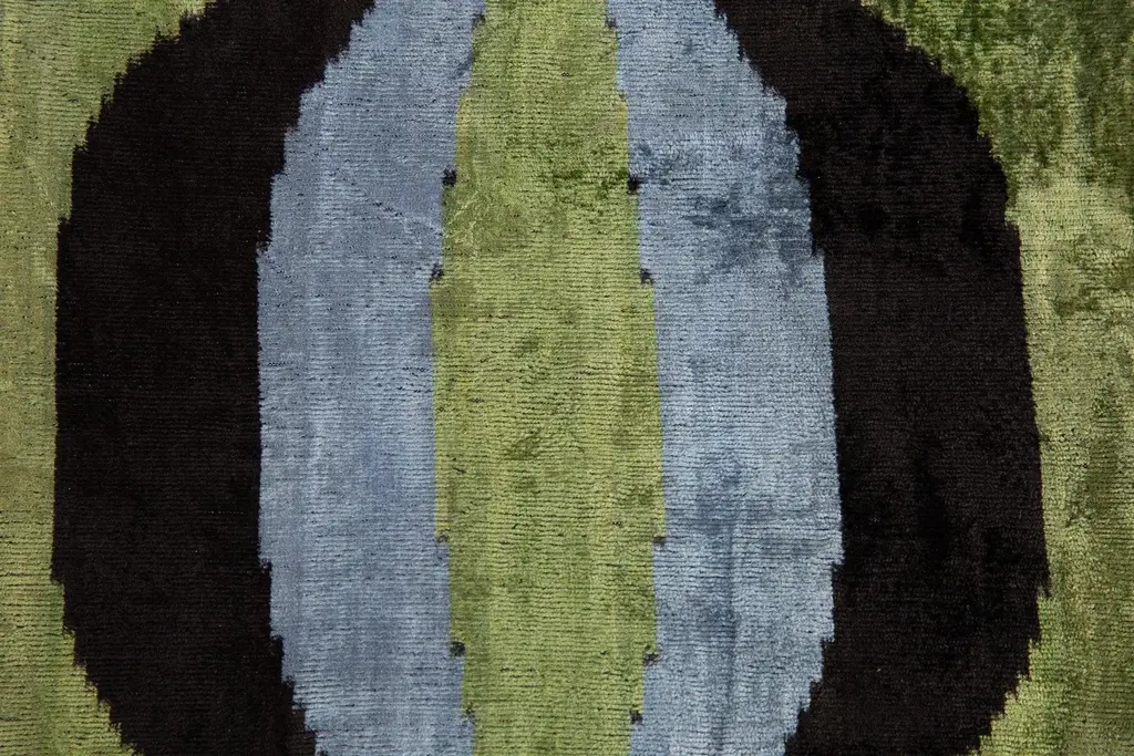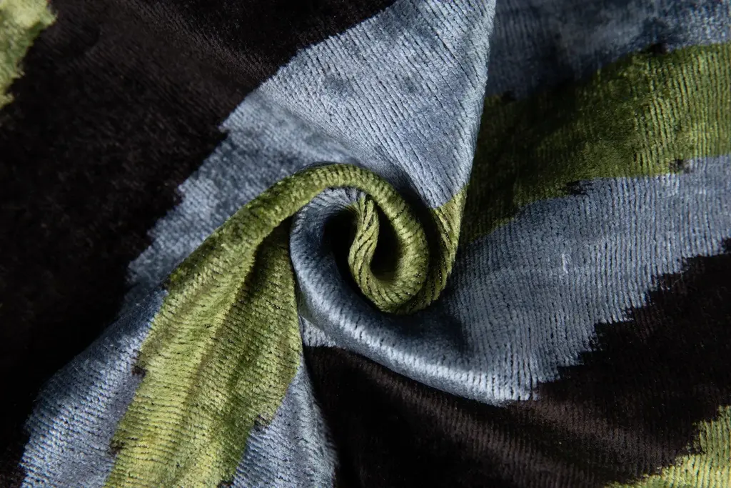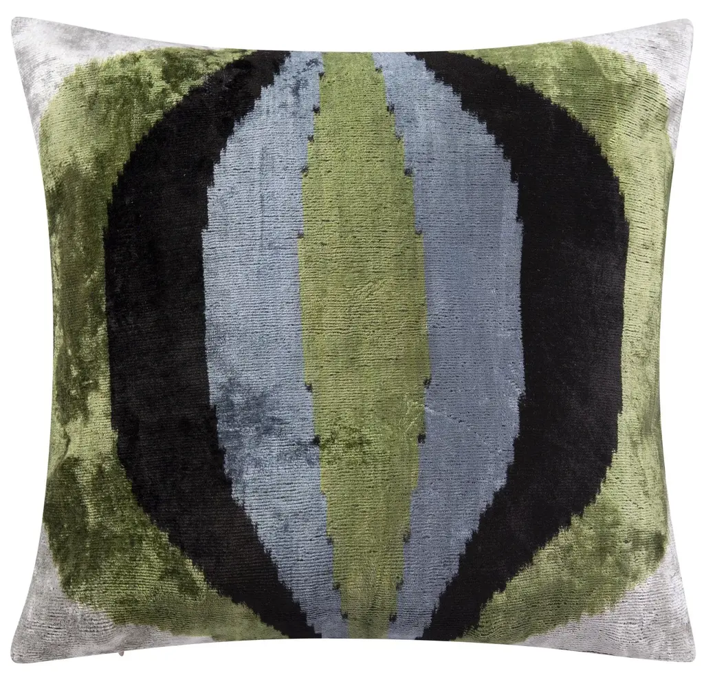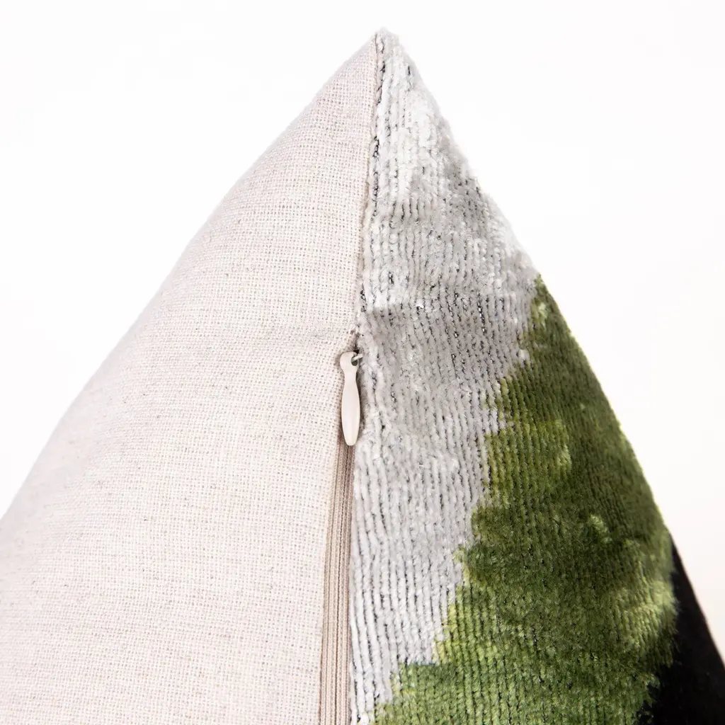 "Handcrafted velvet throw pillow made with organic vegetable dyes for a natural and sophisticated aesthetic. Filled with a premium down feather insert, providing superior softness, plushness, and comfort. Features a bold abstract pattern in green, black, and gray, creating a striking visual effect. Compact 16x16 inch size, perfect for sofas, armchairs, beds, or as an elegant decorative accent. Designed to blend seamlessly with modern, bohemian, eclectic, and contemporary home decor styles. High-quality silk velvet fabric with expert craftsmanship ensures durability and a luxurious finish. Perfect for home decorators, interior designers, and those who appreciate bold, artistic home accessories. Enhance your home decor with this exquisite handmade velvet throw pillow, crafted using natural vegetable dyes for an organic and authentic look. Showcasing a striking abstract design in shades of green, black, and gray, this pillow adds a bold and artistic flair to any space. Measuring 16x16 inches, it is ideal for sofas, chairs, and beds, offering a stylish and cozy touch. The premium down feather insert ensures maximum plushness and comfort. Whether you're decorating a modern, bohemian, or eclectic-inspired space, this pillow seamlessly integrates into any setting. Crafted with luxurious silk velvet fabric, it combines elegance and durability, making it a timeless addition to your home decor collection."