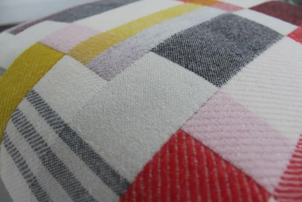 Handwoven on a dobby loom in our studio using a complex double cloth weaving technique and a combination of weave structures, this unique cushion draws inspiration from the Art Deco and Bauhaus movements.This striking contemporary piece is custom made to order in soft merino lambswool, and can be used as a seat or floor cushion.Hand-woven to order. A bespoke option is available in colours / size of the client's choice.British Fleece insert - please note for orders outside of the UK you will need to request a shipping quotation. The shipping cost on the listing is for the cushion cover only. Front: Handwoven British-sourced Merino LambswoolBack: Handwoven Harris Tweed in Mid Grey with zipOptional Cushion Insert: 100% cotton cambric cover with zip filled with British Dorset Horn fleece Care: Dryclean or handwash gently in cool water with a detergent designed for delicate materials. Reshape whilst wet and dry flat.