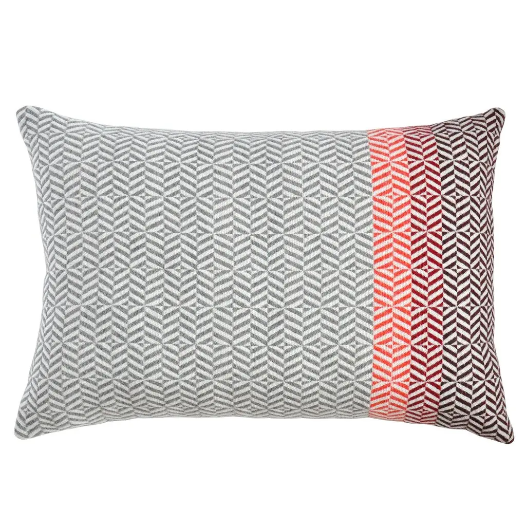 Handwoven Block Stripe Geometric Merino Wool Cushion Pillow, Dusty Pink Grey