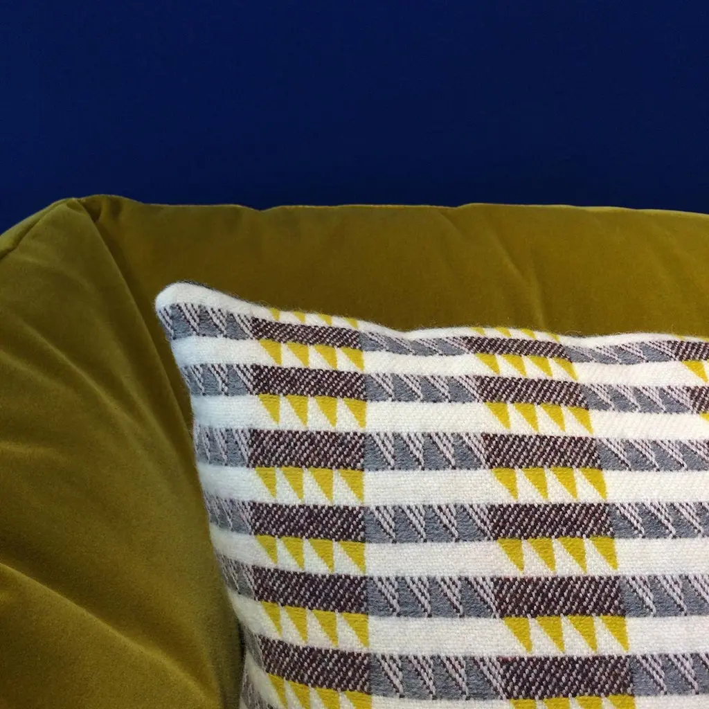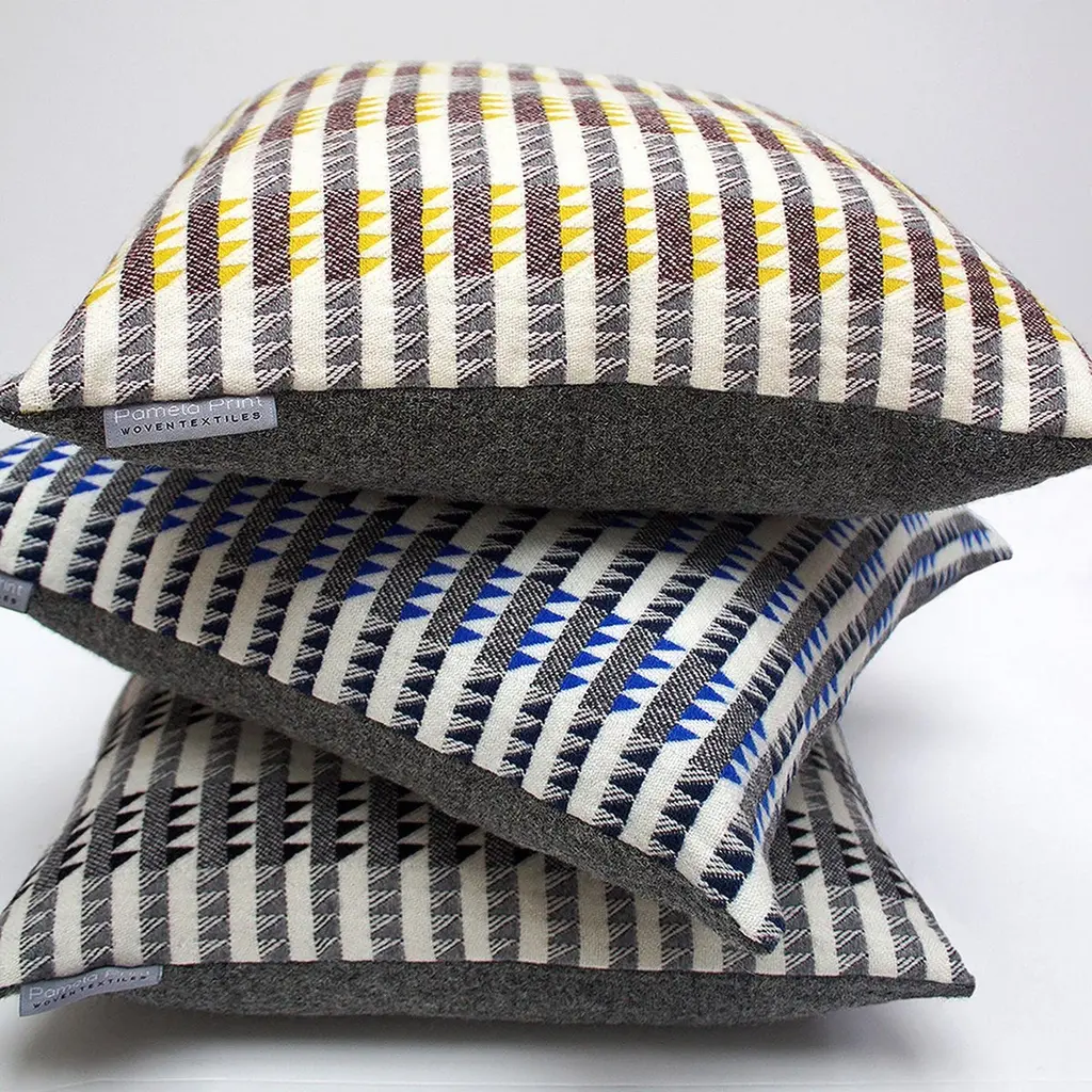 Inspired by decorative stone and iron work, the Ixelles cushion takes its name from an area of Brussels renowned for its Art Deco architecture.Handwoven on a dobby loom in our studio using soft merino lambswool and a traditional extra weft weaving technique, each cushion is meticulously made by hand.The cushion is backed with handwoven Harris Tweed and comes with an optional cushion insert filled with British fleece, making this a completely sustainable product.This piece is made to order. Also available in Indigo, Papaya and Graphite Grey. A bespoke option is available in colours / size of the client's choice.Please note orders outside of the UK will be sent without the British Fleece insert. The shipping cost on the listing for orders outside of the UK is for the cushion cover only. If you would like to purchase the cushion with the insert you will need to request a shipping quotation..Front: Handwoven British-sourced Merino LambswoolBack: Handwoven Harris Tweed in Mid Grey with zipOptional Cushion Insert: 100% cotton cambric cover with zip filled with British Dorset Horn fleeceCare: Dryclean or handwash gently in cool water with a detergent designed for delicate materials. Reshape whilst wet and dry flat.