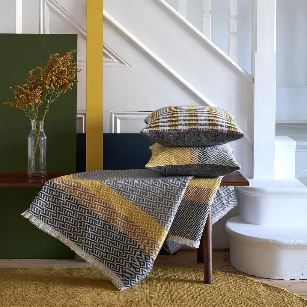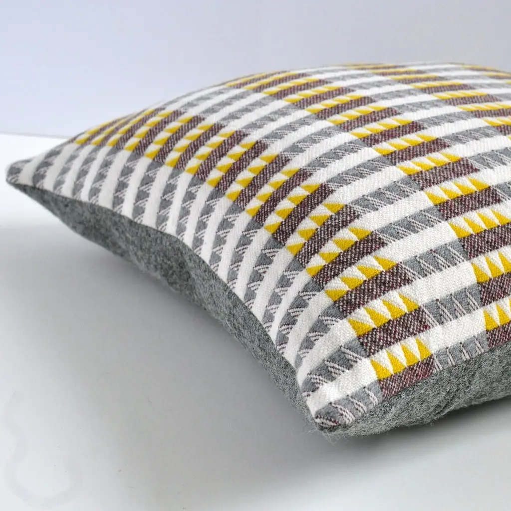 Handwoven Geometric Merino Wool Cushion Pillow, Yellow Mustard Grey