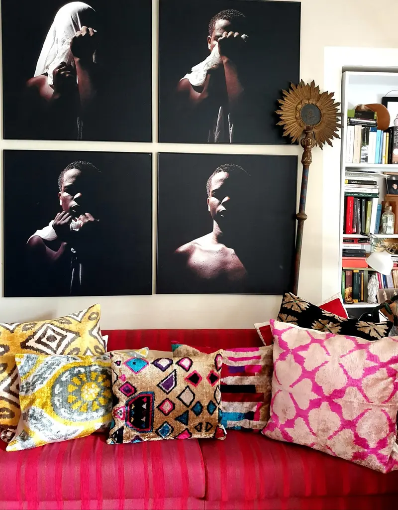 Add a touch of luxury and color to your space with our silk velvet cushions, available in an array of vibrant Ikat designs. Each cushion combines rich textures with bold patterns, bringing warmth and character to any room. Perfect for layering on sofas or beds, these cushions are an effortless way to infuse your decor with timeless style and artistic flair.Front: 100% silk velvetBack: 100% cottonNote: Due to the handwoven nature of the cushions, no two are exactly the same, making each piece truly one-of-a-kind.