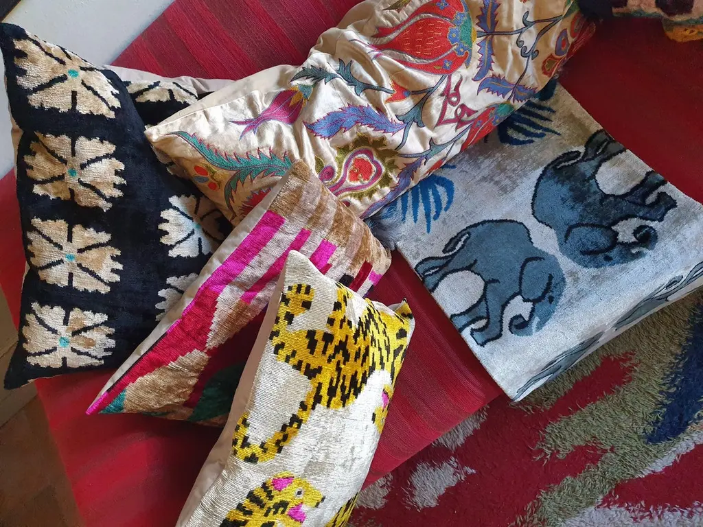 Add a touch of luxury and color to your space with our silk velvet cushions, available in an array of vibrant Ikat designs. Each cushion combines rich textures with bold patterns, bringing warmth and character to any room. Perfect for layering on sofas or beds, these cushions are an effortless way to infuse your decor with timeless style and artistic flair. Front: 100% silk velvet Back: 100% cottonNote: Due to the handwoven nature of the cushions, no two are exactly the same, making each piece truly one-of-a-kind.