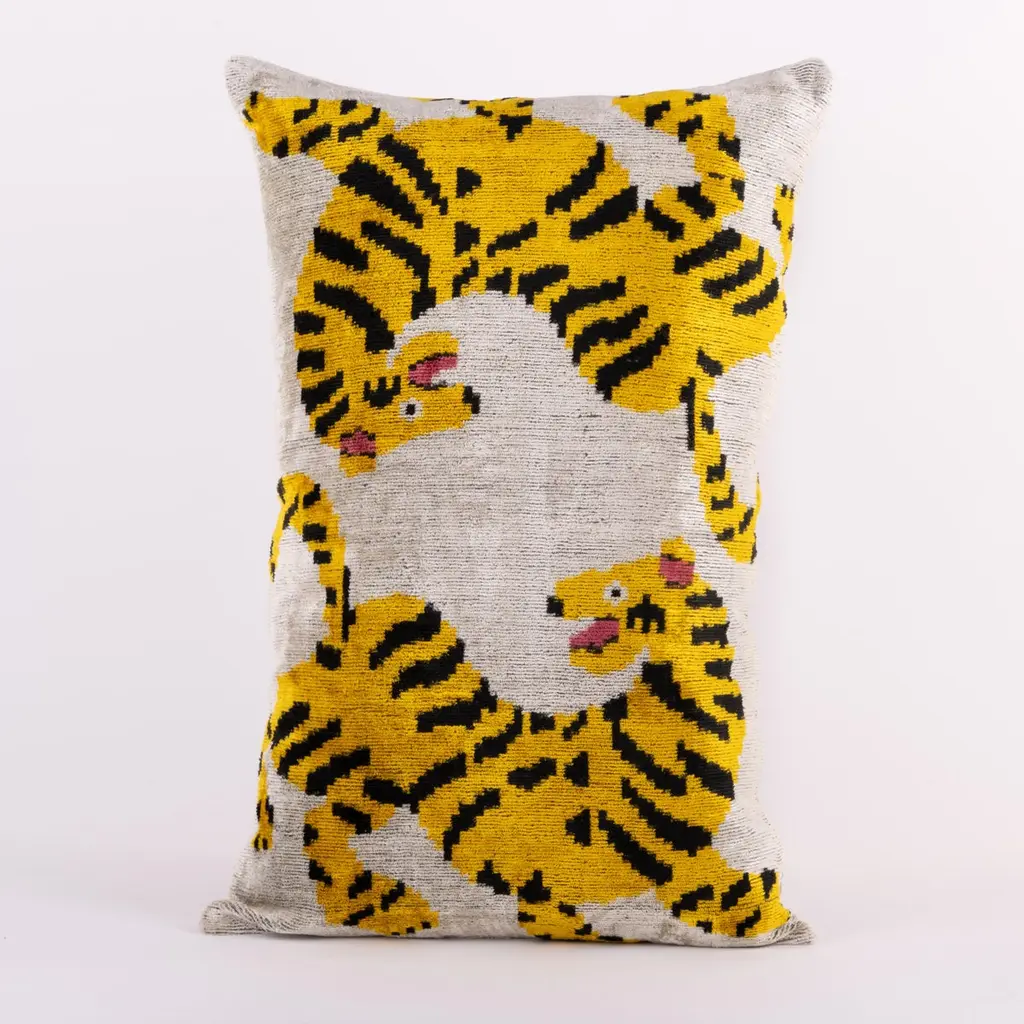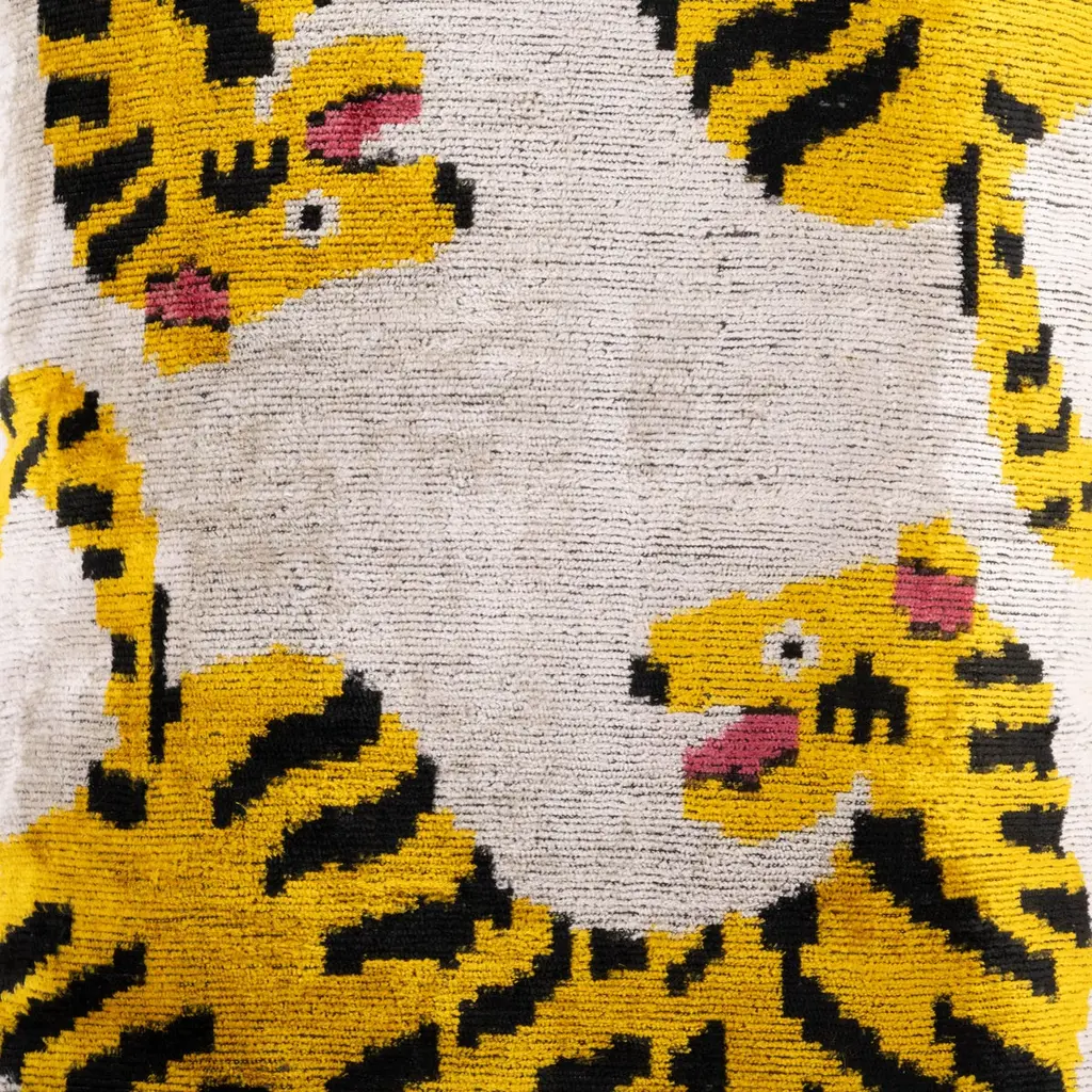 Handwoven Silk Velvet Ikat Cushion - Tigers
