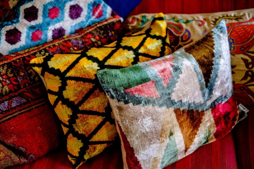 Add a touch of luxury and color to your space with our silk velvet cushions, available in an array of vibrant Ikat designs. Each cushion combines rich textures with bold patterns, bringing warmth and character to any room. Perfect for layering on sofas or beds, these cushions are an effortless way to infuse your decor with timeless style and artistic flair. Front: 100% silk velvet Back: 100% cottonNote: Due to the handwoven nature of the cushions, no two are exactly the same, making each piece truly one-of-a-kind.