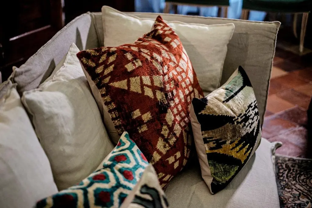 Add a touch of luxury and color to your space with our silk velvet cushions, available in an array of vibrant Ikat designs. Each cushion combines rich textures with bold patterns, bringing warmth and character to any room. Perfect for layering on sofas or beds, these cushions are an effortless way to infuse your decor with timeless style and artistic flair.Front: 100% silk velvetBack: 100% cottonNote: Due to the handwoven nature of the cushions, no two are exactly the same, making each piece truly one-of-a-kind.