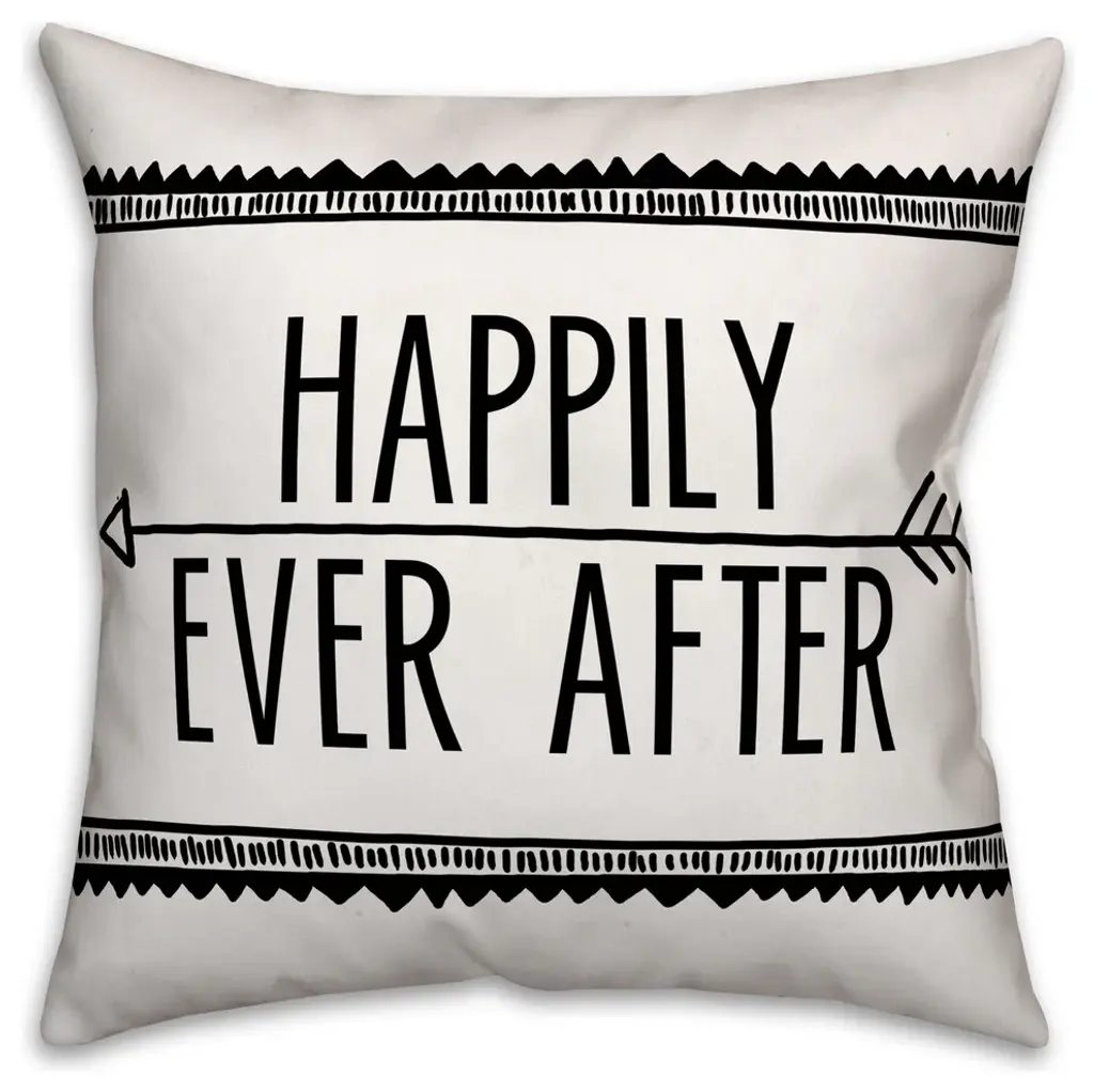 Happily Ever After Black And White Spun Poly Pillow, 18x18
