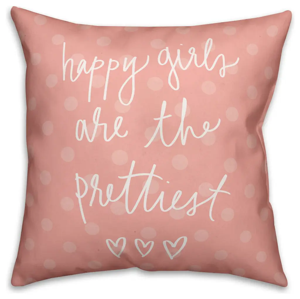 Happy Girls Are The Prettiest Pink Polka Dot Spun Poly Pillow, 18x18