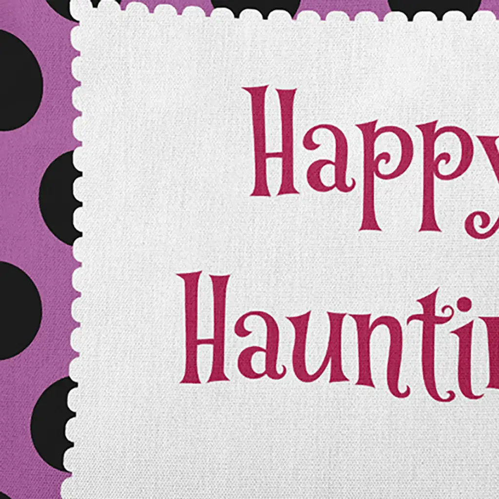 Create a festive and fun atmosphere in your home this Halloween season with our Halloween Happy Haunting Dots Pillow from the Witches Brew Collection. This indoor/outdoor pillow will add fun and style to your porch, deck or patio! This decorative pillow is printed on both sides and crafted with a soft, durable polyester exterior, and filled with down alternative for a crisp look and a comfortable sitting experience. The fabric is resistant to weather, mold, and mildew so you can accentuate your indoor or outdoor decor. It is sewn closed with a knife edge and can be easily spot cleaned or dry cleaned. The quirky designs in this collection are the perfect way to enhance your fall decor and to bring a smile to all who encounter them.