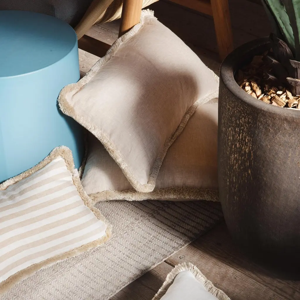 Happy Linen Pillow Beige With Beige Fringes