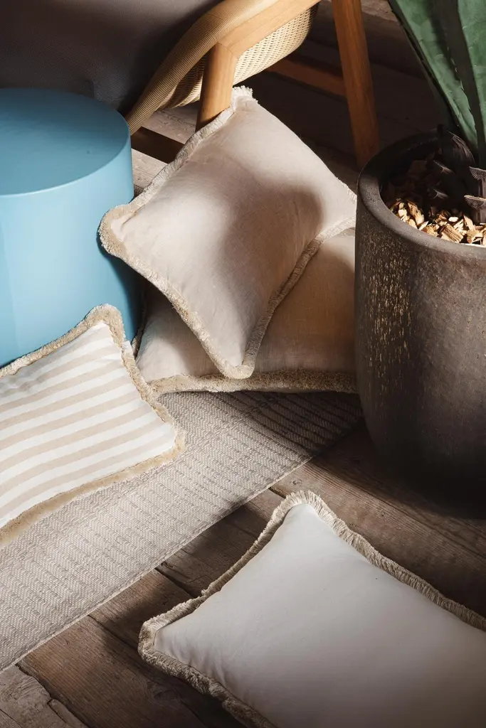 LO DECOR Happy Linen Pillow the perfect accent piece for an easy style update, this cushion makes a chic accent for any well-decorated home, adding charm to a bed, sofa, or your favorite armchair. Crafted of pure Italian linen, refined with sophisticated cotton fringes, LO DECOR Linen collection is available in both plain and striped colorsboth with its delicate hues and details with understated glamour.Warm colors, exquisite craftsmanship, and elegant materials are the hallmarks of these cushions which will be a refined addition to both a classic and contemporary decor.Removable cover.Care instructions: dry wash.LO DECOR is a luxury interior design firm established by Lorenza Briola in 2017, noted for its highly sophisticated aesthetic and meticulous production process, representing the Italian Excellence in the realization of Italian luxury handmade cushions.Core to the brand is a research and innovation ethos, that is evident in all its cushions, from thread and color selection to the final motif design. Based in Carimate (Como), Lo Decor places their customers at the center of its creations, providing customizations that embody each vision and interior need. Committed to creating only the finest cushioned comforts from exquisite fabrics, LO DECOR celebrates tradition, innovation and outstanding quality. Each individually artisan fashioned in Italy, the pillows demonstrate a devoted attention to detail and are constantly evolving with the decadent demands of home interiors and outdoors.The skills of talented artisans are employed to create cushions that enhance the value of impeccable details. All pieces are marked by simple versatility and charming hues, that are easy to mix and match. Each artisan crafted using a smooth fabric and plush padding, the pillow will instantly elevate both your mood and interior, offering a rich prestige and gentle sheen.