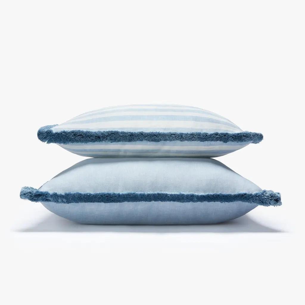 Happy Linen Pillow Light Blue With Light Blue Fringes