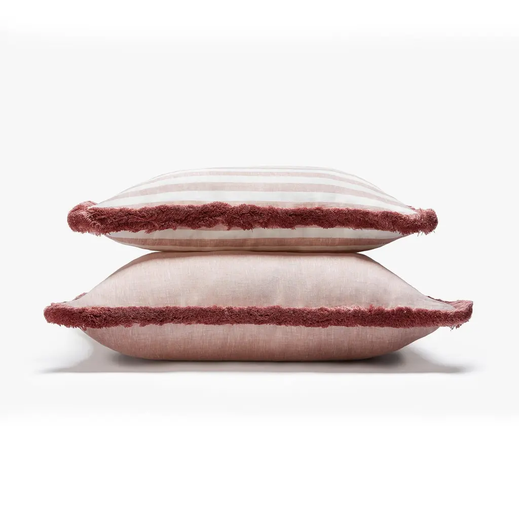 Happy Linen Pillow Light Pink With Light Pink Fringes