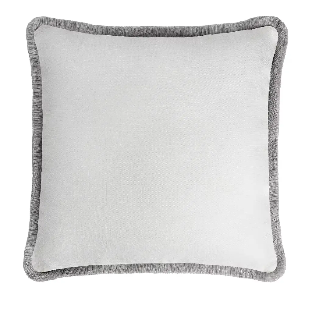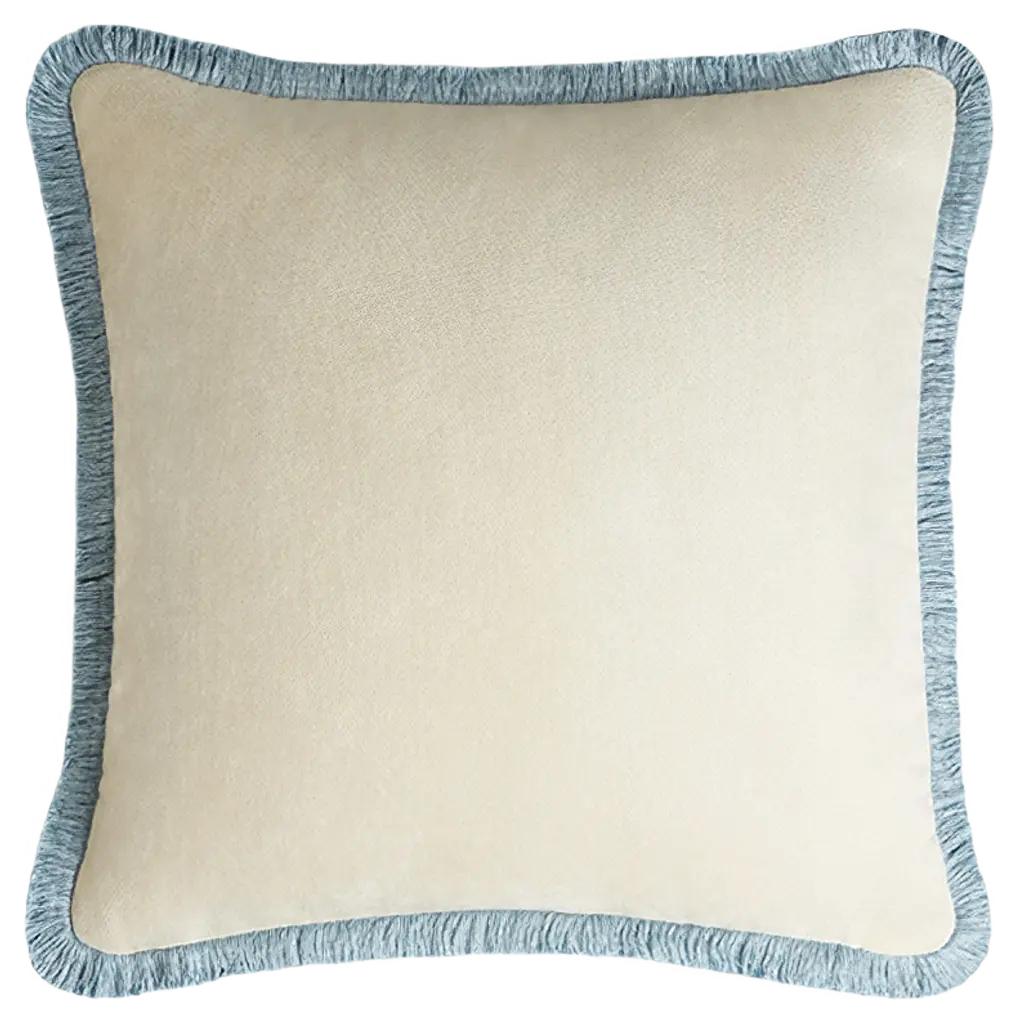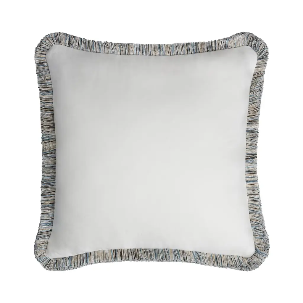 Happy Linen Pillow White With Light Blue Fringes