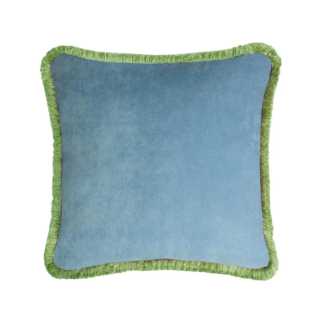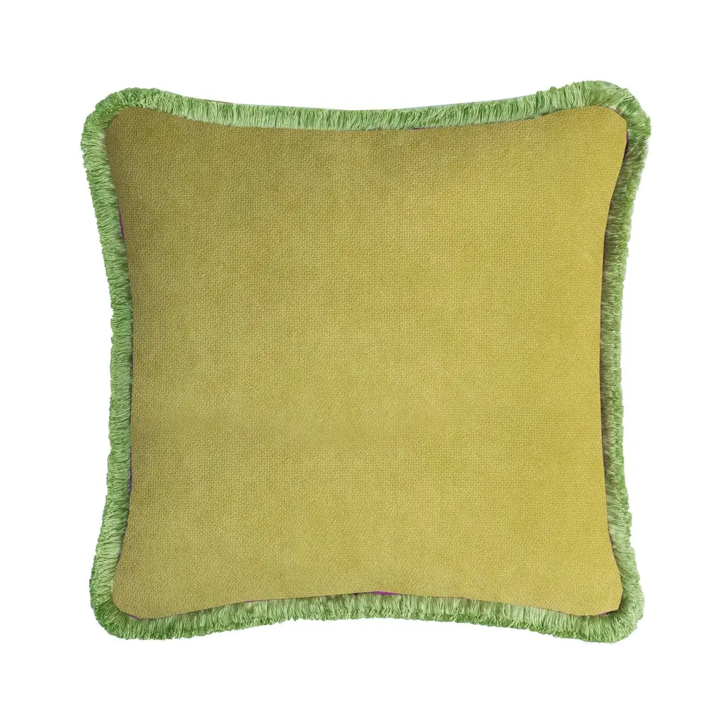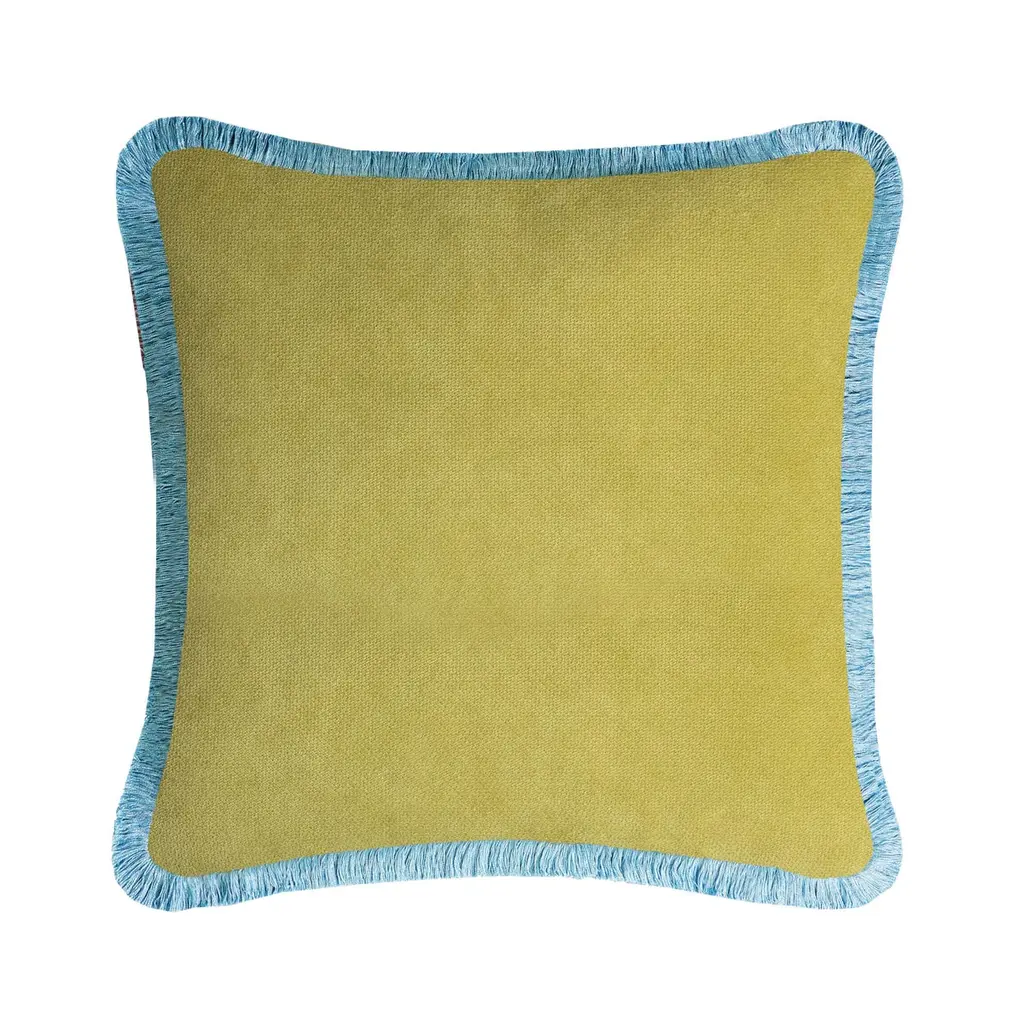 Happy Pillow 40 Velvet Yellow With Pink Fringes