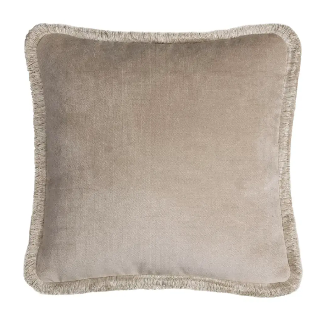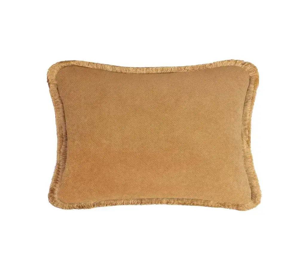 Happy Pillow Camel Velvet With Fringes From Lo Decor