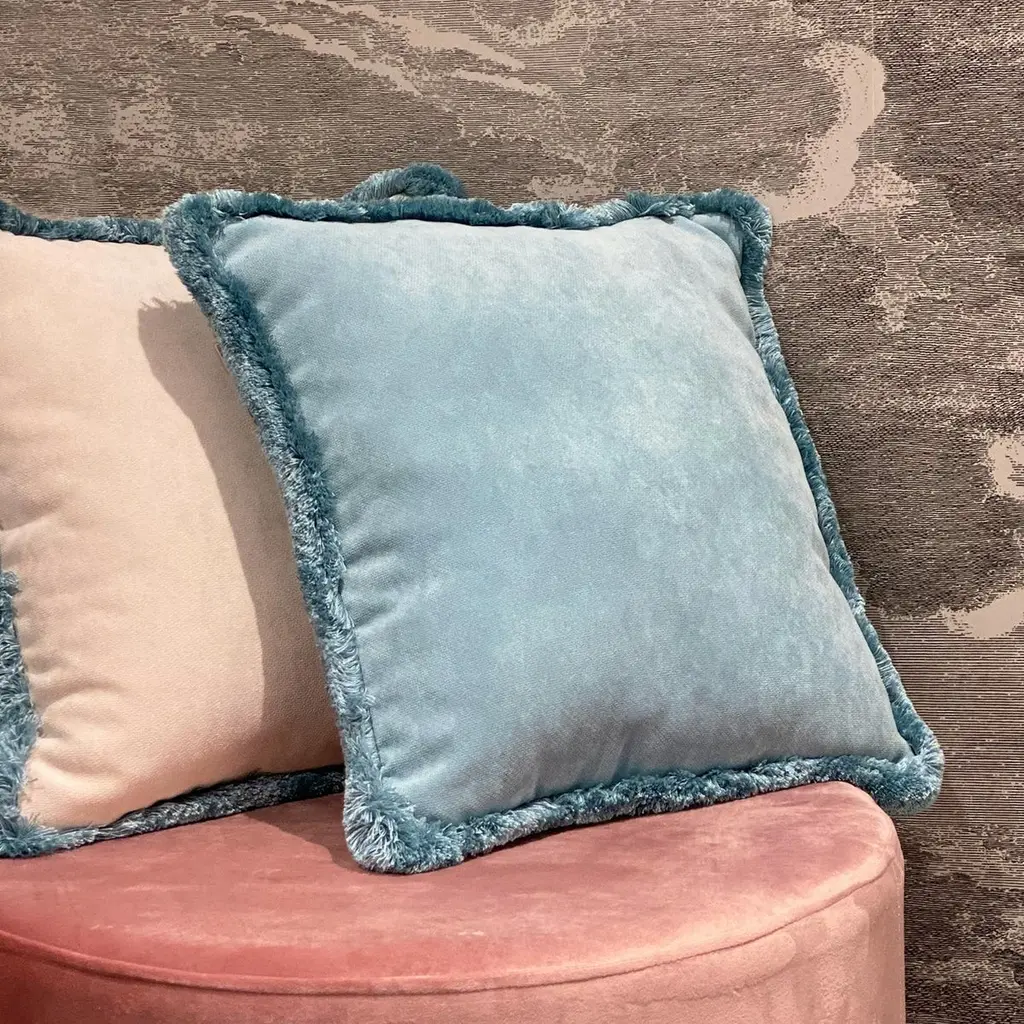 Happy Pillow Light Pink Velvet With Light Pink Fringes