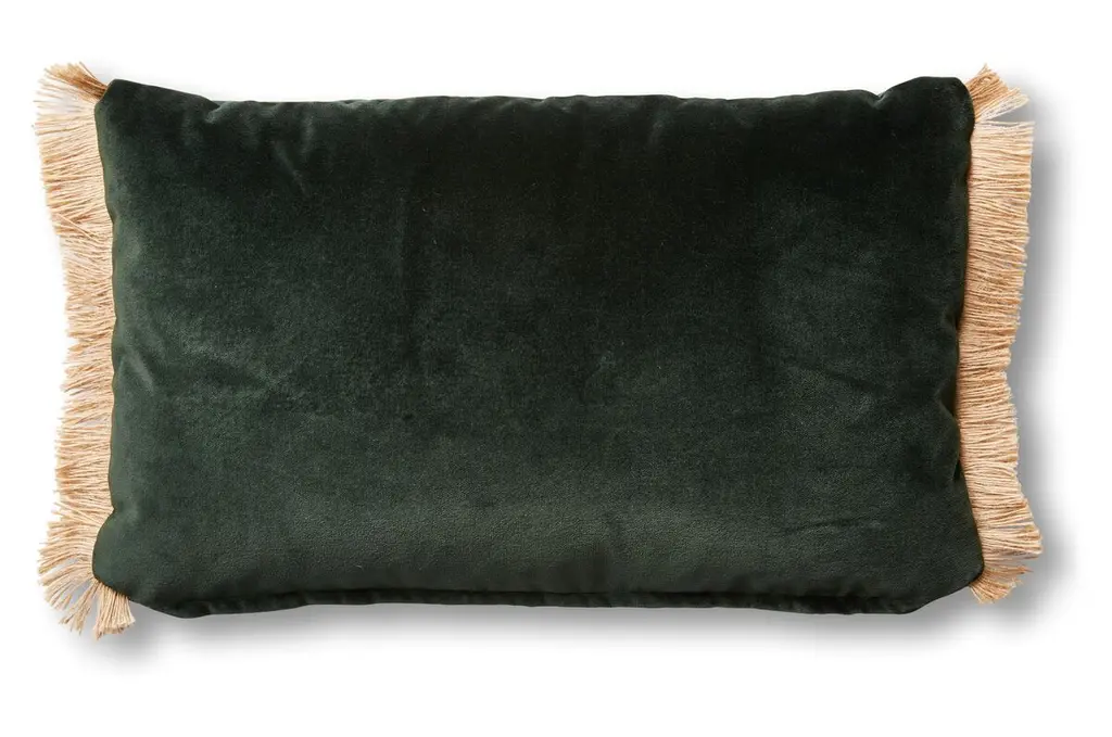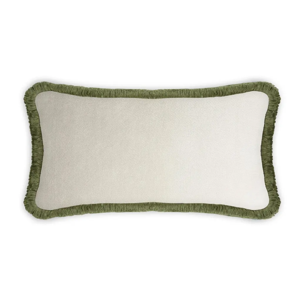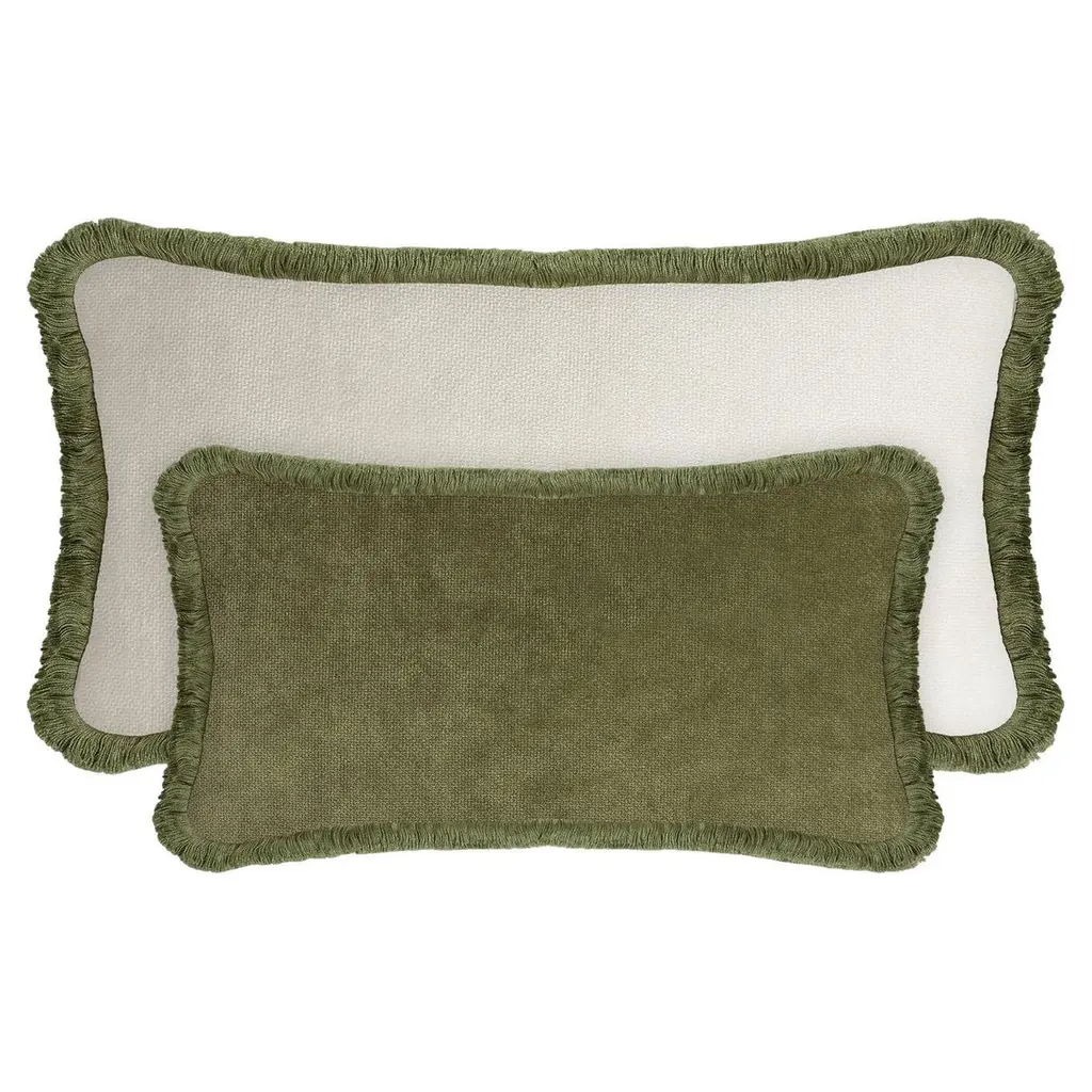 Happy Pillow Rectangle Green Velvet With Green Fringes