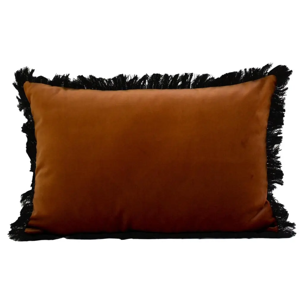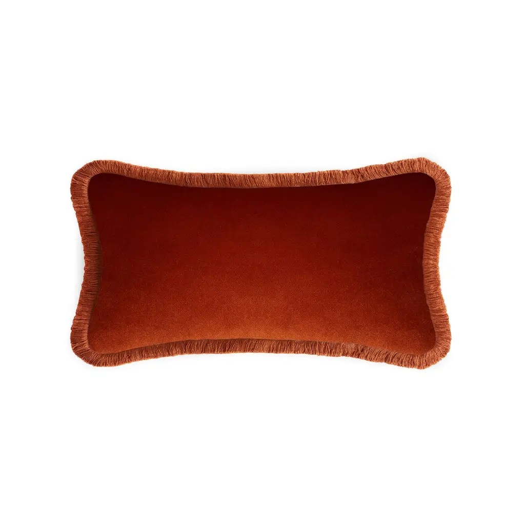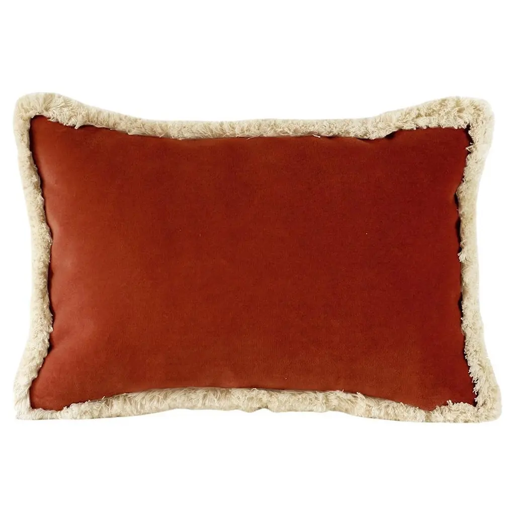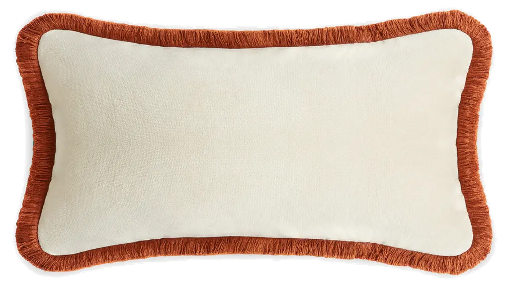 Happy Pillow Rectangle White Velvet With Brick Fringes