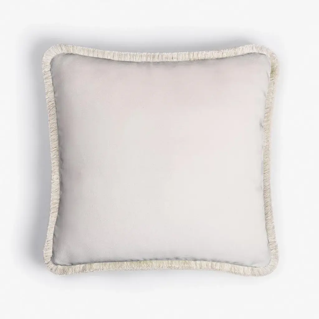 Happy Pillow Soft Velvet Cushion With Fringe White-White By Lorenza Briola For Lo Decor