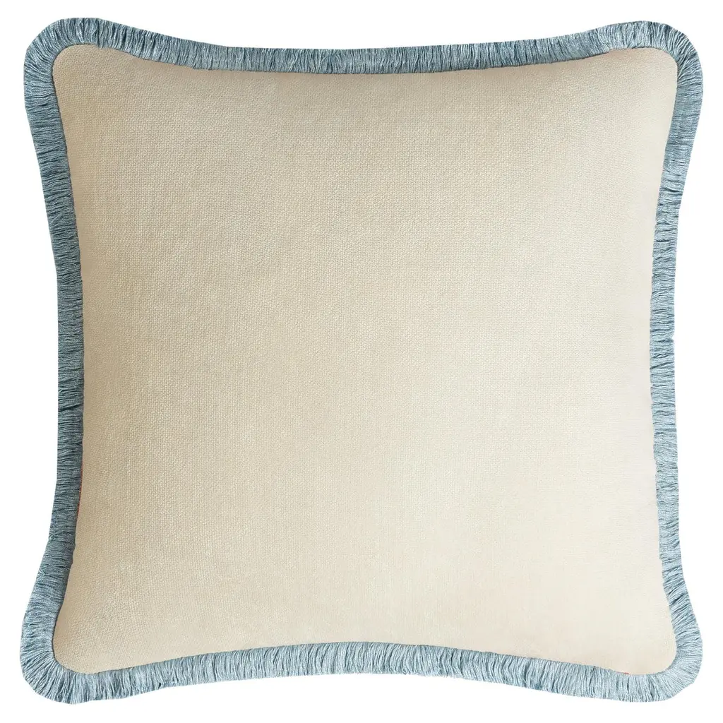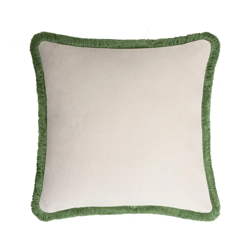 Happy Pillow Velvet Dirty White With Pink Fringes