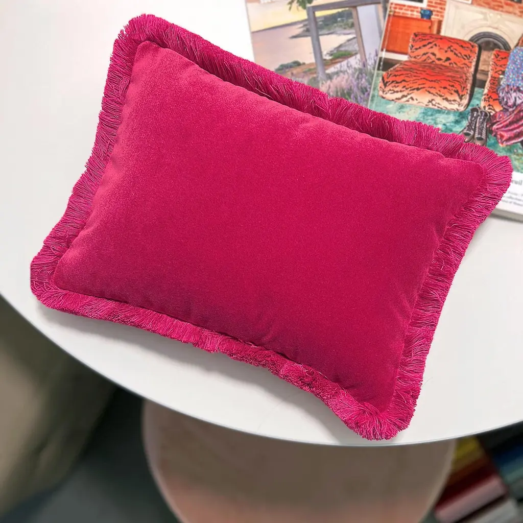 Happy Pillow Velvet Fuchsia With Fringes Small