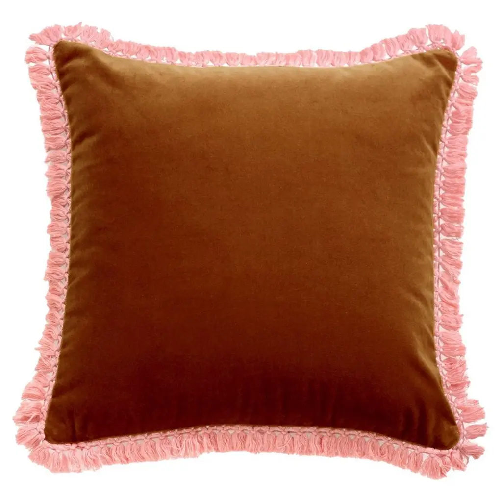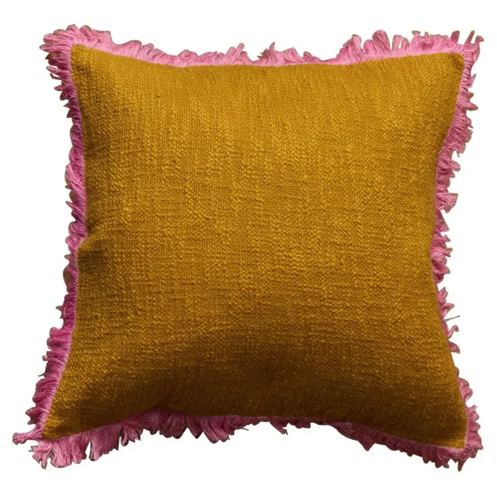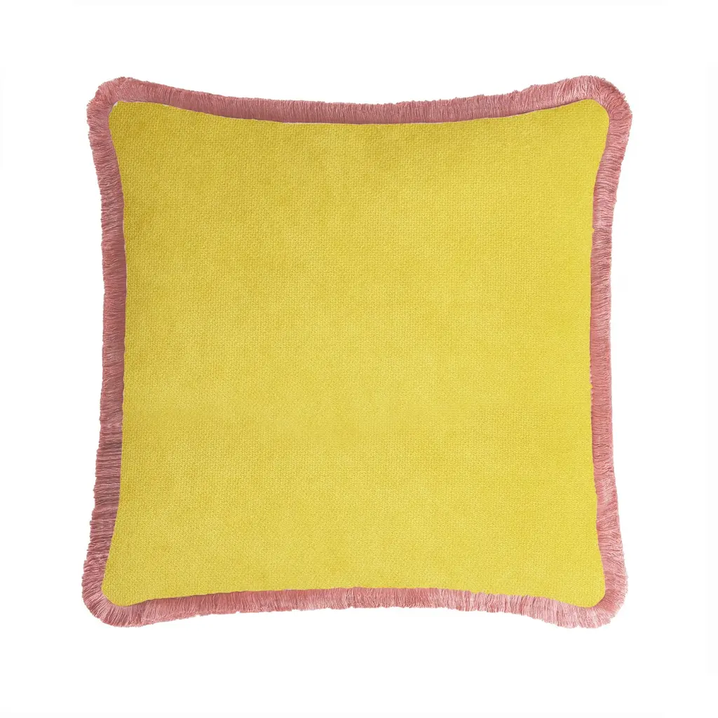 Happy Pillow Velvet Fuchsia With Yellow Fringes